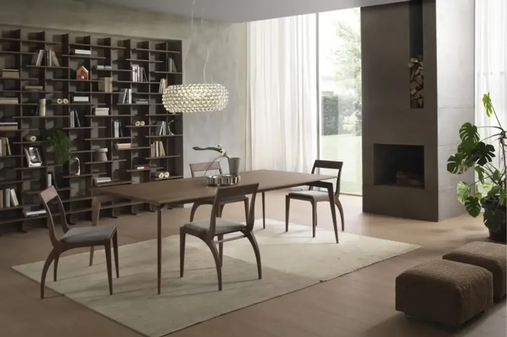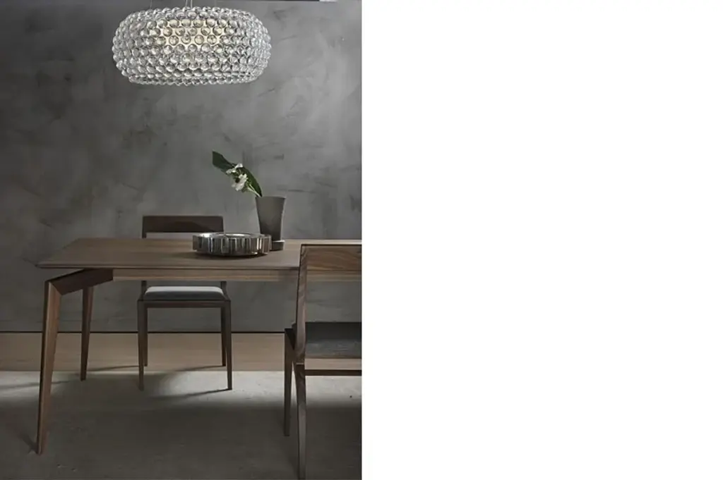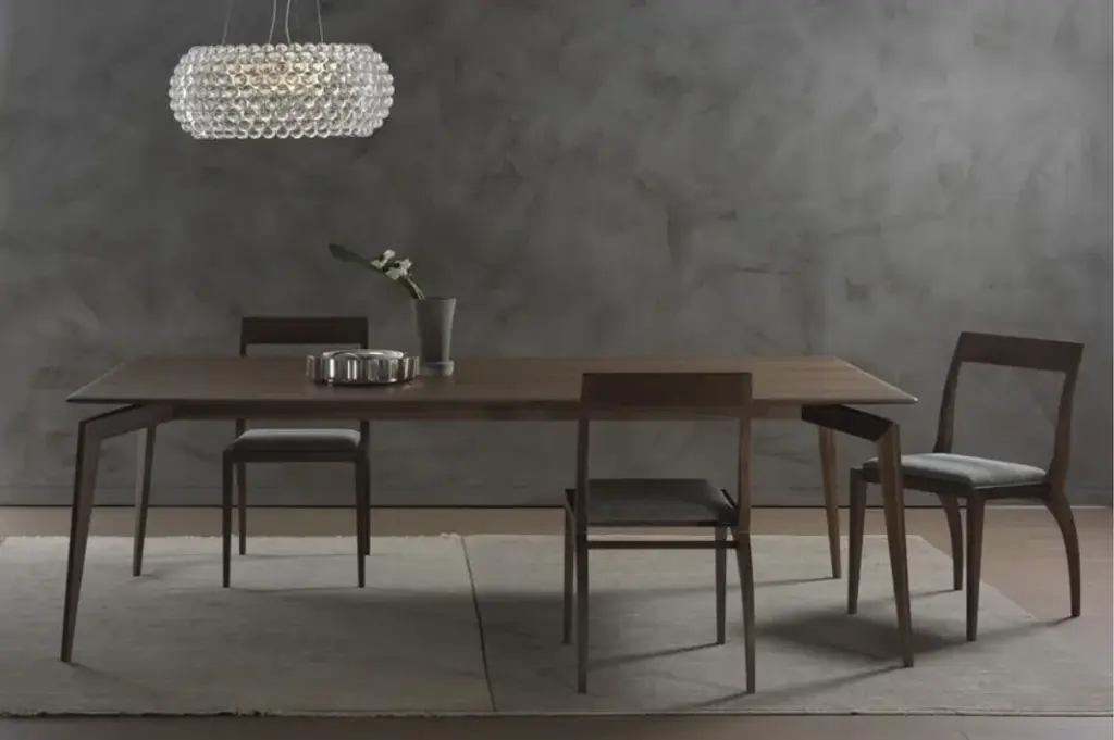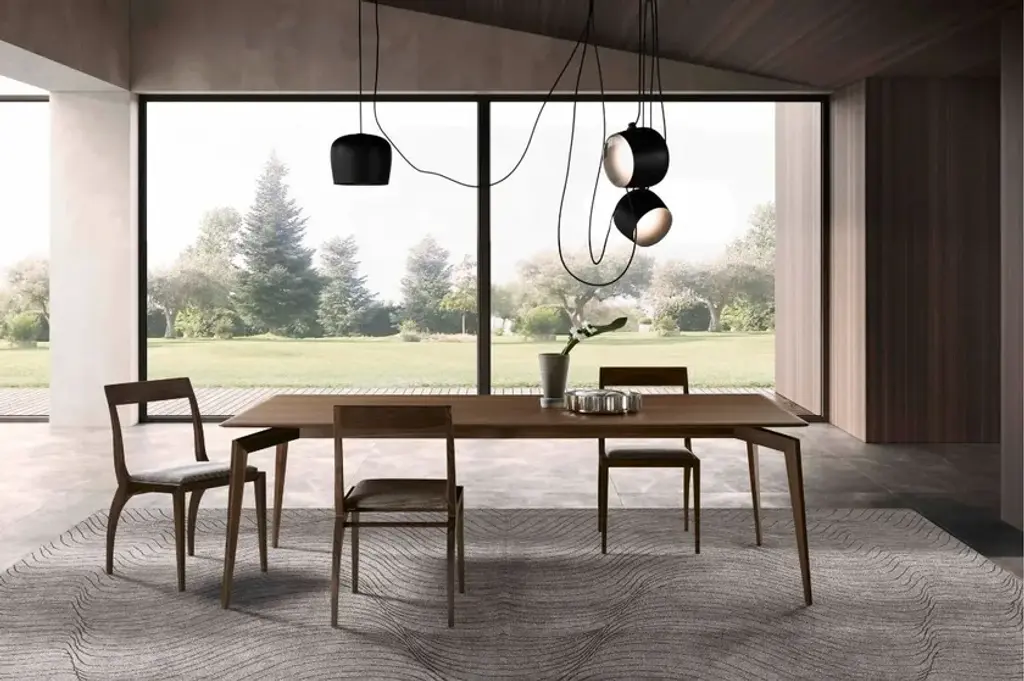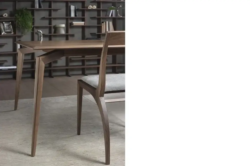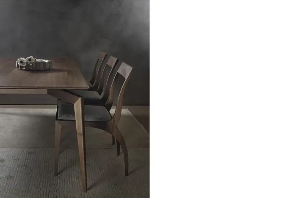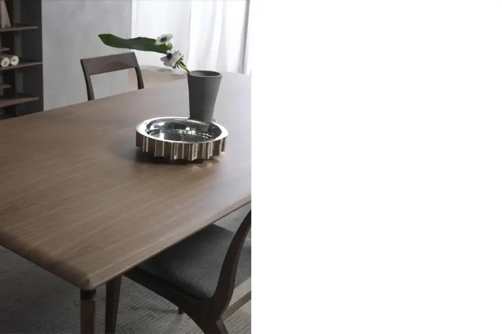 HOPE is a rectangular dining table with a solid Canaletto walnut or ash wood frame and a top available in wood.It stands out for its attention to design details, such as the angled solid wood legs—each divided into two sections—and the seamless connection between the structure and the top, whether in wood or glass."Lightness and elegant dynamism"—these are the qualities that architect Cesare Arosio aimed to express in this unique and refined designer dining table, a piece that brings character and sophistication to any interior.Dining table with a solid Canaletto walnut or ash wood frame.Top available in natural, bronze-tinted, or smoked tempered glass (10 or 12 mm thick) with plates, or in Canaletto walnut or ash wood veneer.