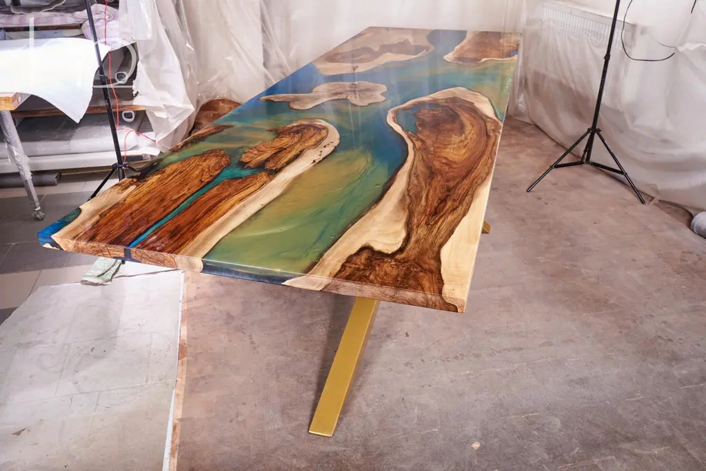 It is precious when your banks are washed by a clear river. With water that gives joy, purity and life. The waters of this river are clear and you can walk on it without fear of stepping on something dangerous and injuring yourself. You can drink from it and get your thirst quenched. You can water your garden with it. And I am sure that the waters of such a river are more precious than gold. They give real life. They will certainly become gold for the soul and bring a great harvest to your garden. Because these waters are made that way. Designed to give life to everything they touch.The table is made from pieces of old walnut and gold and blue epoxy resin. Coated with hard varnish for durability. Polished for hours to look perfect. Handcrafted in our workshop. Made with passion. Each table is made of selected slabs of different woods with character. We spend a lot of time selecting 100% of your slabs that will suit your heart and interior. The Italian resin that is used for pouring is the best in the world. It does not turn yellow, does not become cloudy from time to time and lasts forever. All finishes are also from the best Italian brands. All of them are as hard as possible to give the table moisture resistance, resistance to mechanical damage and scratches. Also, all tables use the technology of pouring wood from above and below with a layer of epoxy resin, which makes the product ever-living and also completely waterproof. Also tables are completed with a protective film which will keep your table virgin during the first years of use. I just want you to enjoy your table as a real work of art in which we have invested part of our soul, experiences and efforts.