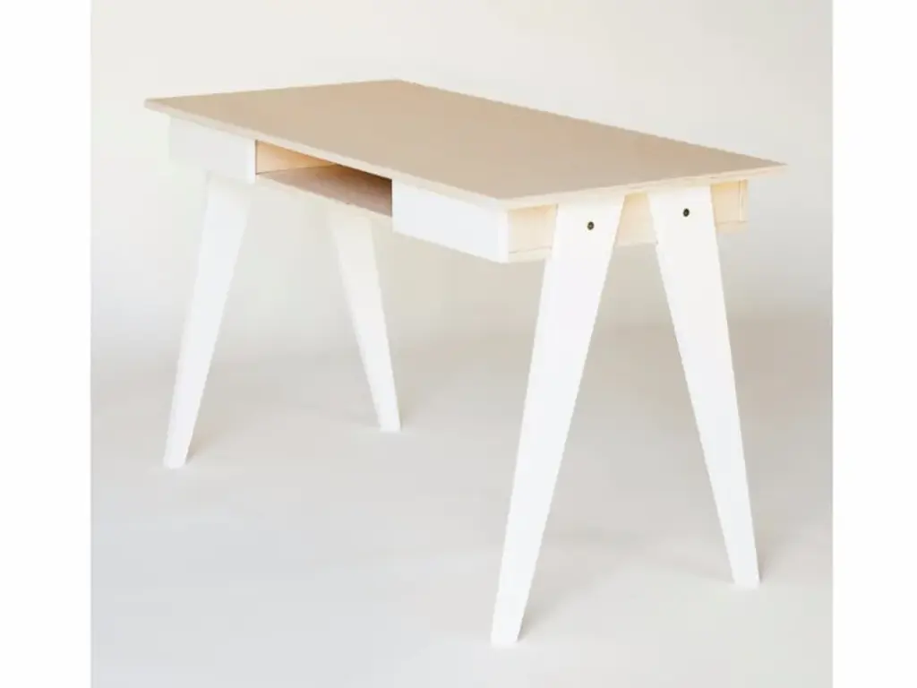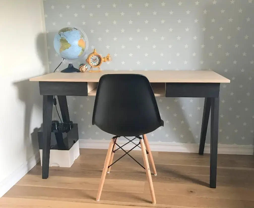 An einem so eleganten Tisch küsst einen die Muse. Den Federhalter auf das Regal in der Mitte und die wichtigen Papiere in die seitlichen Schubladen. PS! An diesem Tisch küsst die Muse auch am Computer.Aus Birkensperrholz, ölgewachst. Schubladenschienen schließen leise. Die Innenmaße beider Schubladen betragen 24 × 43 cm, die Innenhöhe 7 cm. Mittlere Regalbreite 52 cm. Der Schreibtisch ist bereits montiert. Sie müssen lediglich die Beine zu Hause anschrauben.Kollektion HUH wurde für den estnischen Designpreis Bruno 2014 nominiert.The HUH collection is marked by wider, oblate legs. The year 1975 is back again. People have time for books and contemplation… Choose only one – desk, night table, media stand, dining table or take them all. Play Stayin' Alive and enjoy the moment. It was nominated for Estonian design award Bruno 2014.