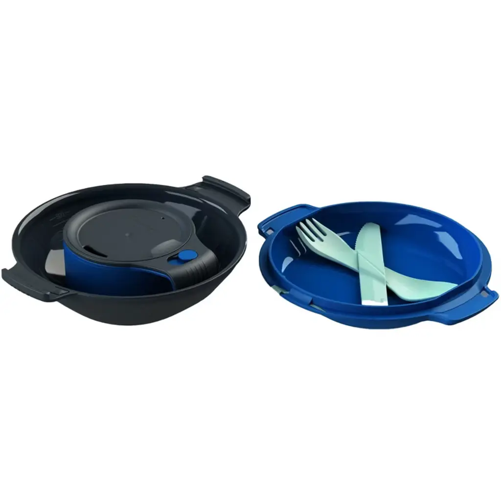 The humangear GoKit+ Deluxe mess kit is the ultimate personal camping companion, featuring an ingeniously designed 8-tool system that combines practicality with portability. This lightweight hiking mess kit includes a secure, snap-together plate and bowl with convenient side handles, eliminating the need for a table while dining outdoors. The innovative design incorporates a versatile cupCUP that functions as either an insulated mug or splits into two single-wall cups, alongside a clever GoBites Uno fork/spoon combo with a snap-on serrated knife that locks into the plate for rattle-free transport. Perfect for backpacking adventures, this BPA-free camping mess kit can safely handle boiling water for preparing dehydrated meals and comes backed by humangear's unconditional lifetime warranty.