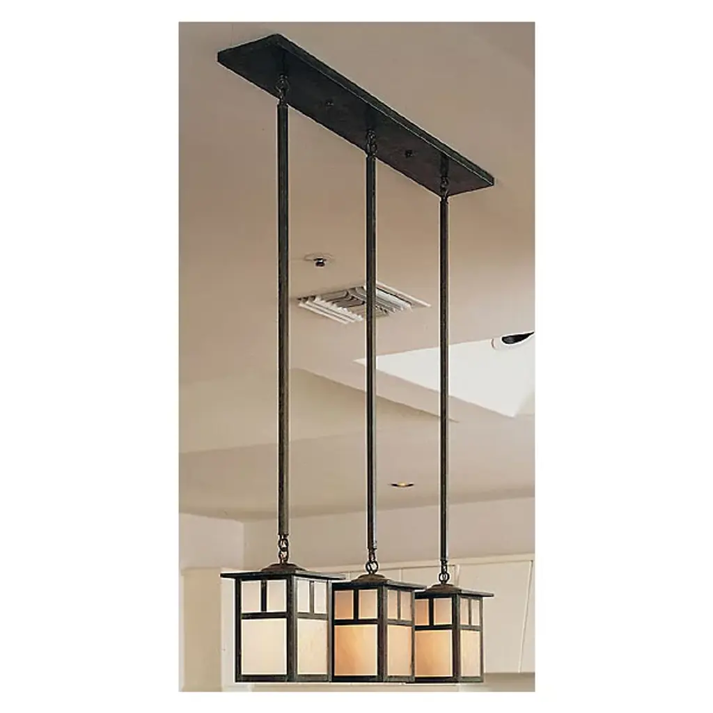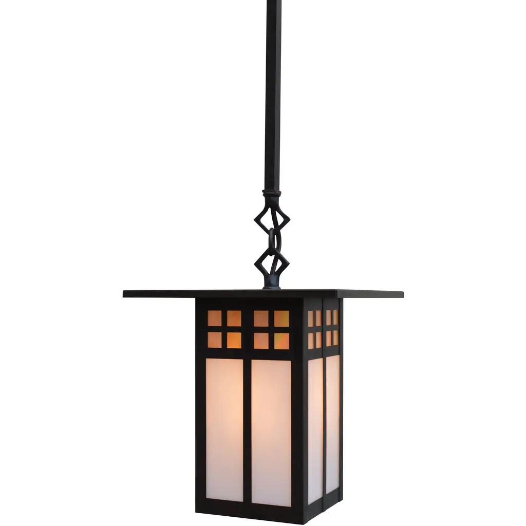 Hand-crafted brass caging and hand-formed glass give the Arroyo Craftsman Huntington Suspension a healthy portion of Arts and Crafts charm, perfect for hanging over the dining room or rustic kitchen table. With a variety of earthy finishes and unique glass hues, this bold fixture contains character and elegance for the Craftsman home.