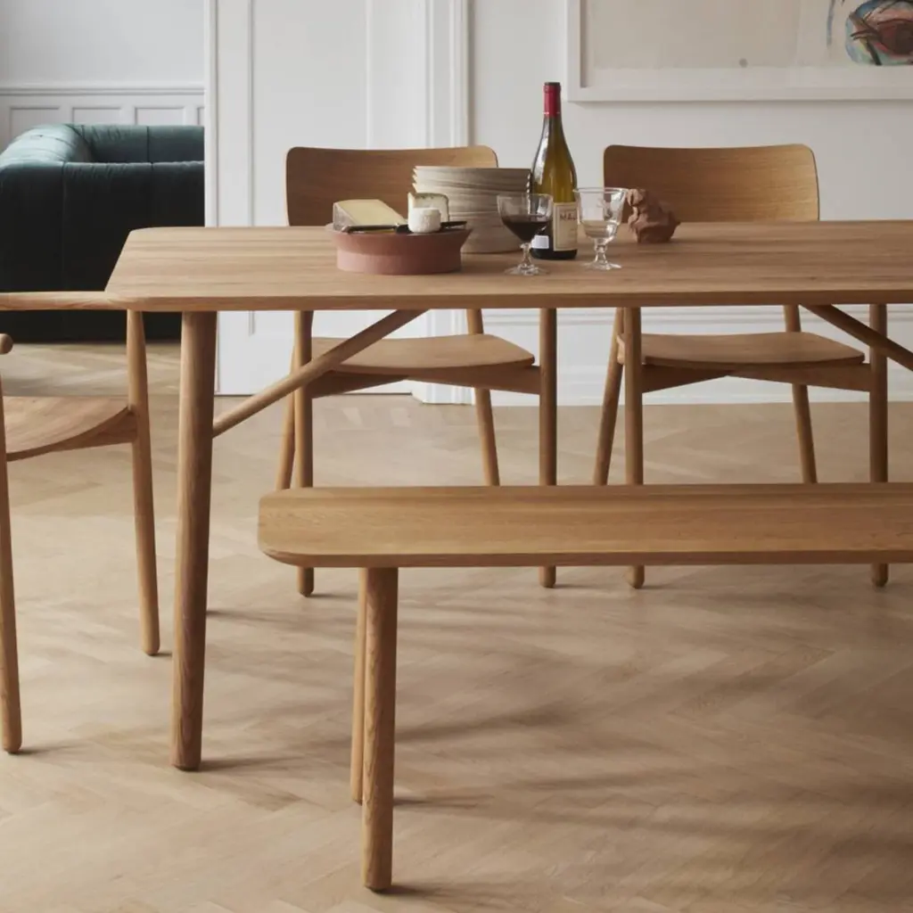 Designer Anton Björsing’s Hven collection encompasses a superb dining table that glories in Scandinavian woodcraft with its stunning grain pattern. Fashioned in solid oak from FSC-certified resources, the table’s virtues also include long-wearing durability and a versatility that suits a variety of interiors. Generously proportioned in either of its 2 sizes, Hven is also airily scaled and finessed with rounded corners and legs.