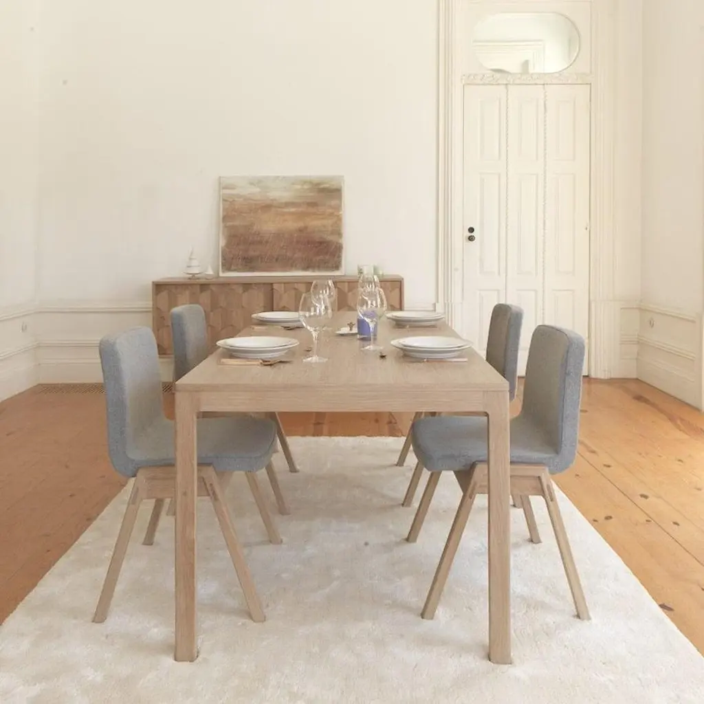 Priced here in oak wood in 200 cm width. Contact us for other sizes and walnut wood. This dining table is designed to elevate every aspect of its composition, ensuring that each detail shines brightly. Inspired by the timeless silhouette of a classic wooden table, it strikes a perfect balance between versatility and durability.Crafted meticulously from solid wood, this table exudes strength and resilience, guaranteeing longevity and reliability for years to come. What sets it apart is its ability to be tailored to individual preferences, with a range of wood options available for the tabletop. This customization allows you to personalize the table to perfectly complement your space, making it a standout centerpiece in any dining area.We do our best to expedite production and to ship and deliver product within the listed lead time, however current lead times might be longer due to global shipping backlog and delays. These delays are out of our control and cannot be a reason to cancel an order.