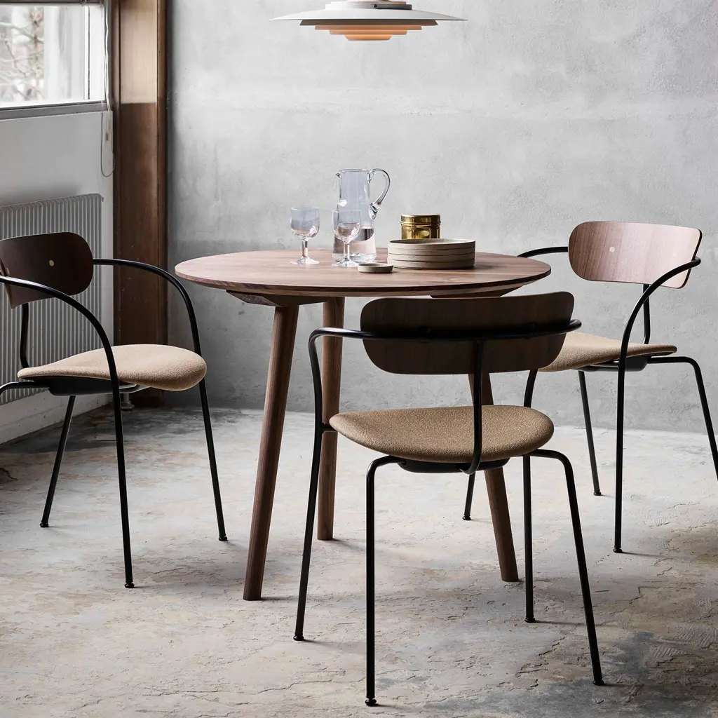 Indulge in sophistication with the In Between Round Dining Table from &tradition. Crafted by Sami Kallio, this Scandinavian-inspired piece combines traditional woodworking techniques with modern design for lasting appeal. Available in three variants, pair with the matching chairs and bar stools for a complete, unique dining experience. Highlights