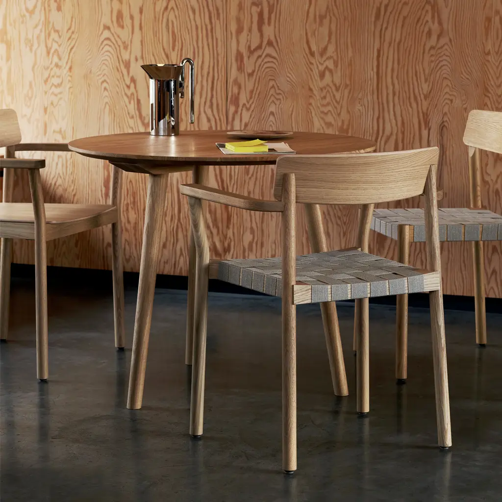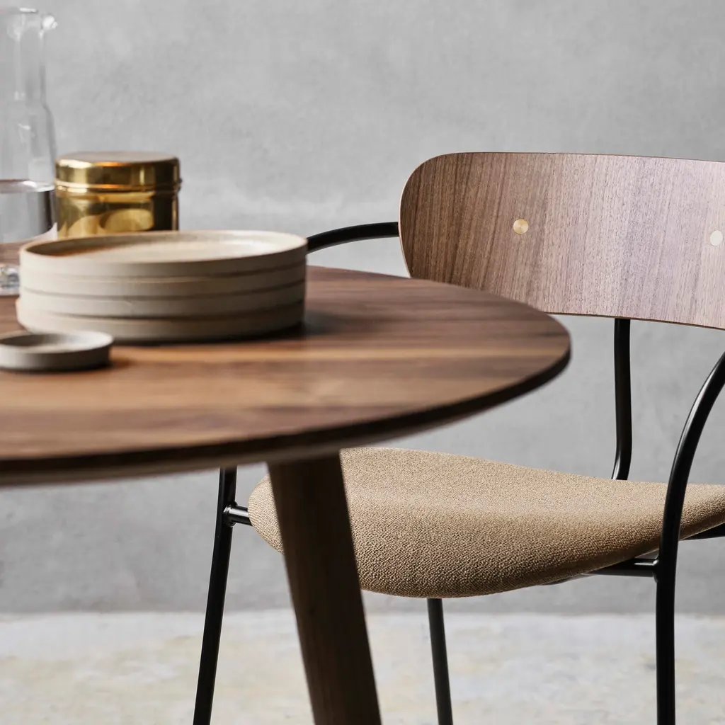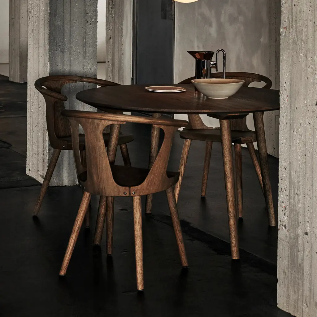 Indulge in sophistication with the In Between Round Dining Table from &tradition. Crafted by Sami Kallio, this Scandinavian-inspired piece combines traditional woodworking techniques with modern design for lasting appeal. Available in three variants, pair with the matching chairs and bar stools for a complete, unique dining experience. Highlights