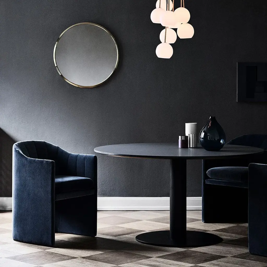 The In Between table with a centre base introduces even more space for people to gather together. Inspired by Sami Kallio's exploration into positive and negative space, it converges traditional wood turning craftsmanship with modern compression moulding and special veneer techniques. Look for the table top in veneer, plywood, linoleum or Fenix. Add a black powder-coated circular base and together you have a modern expression that can easily be integrated into virtually any venue for people to enjoy a meal or simply each other's company. Smaller version (SK11) available here