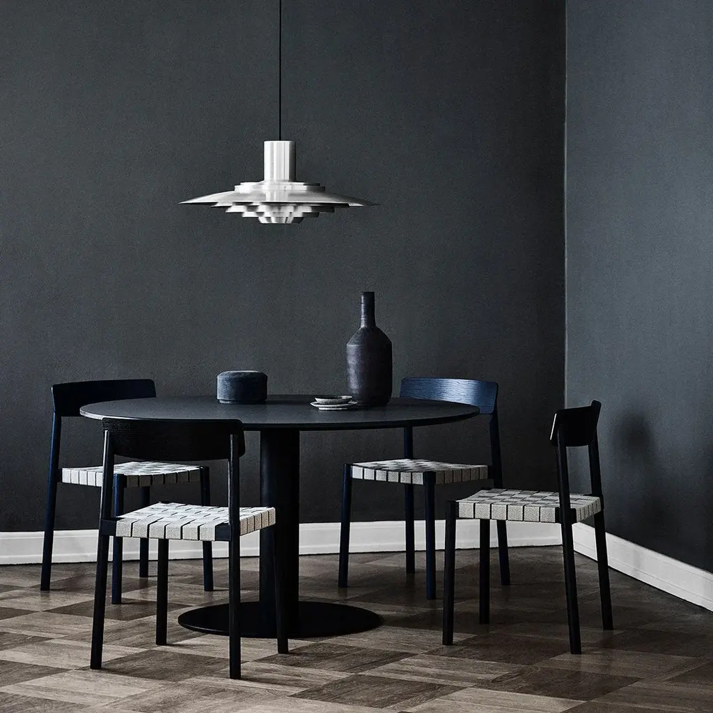 The In Between table with a centre base introduces even more space for people to gather together. Inspired by Sami Kallio's exploration into positive and negative space, it converges traditional wood turning craftsmanship with modern compression moulding and special veneer techniques. Look for the table top in veneer, plywood, linoleum or Fenix. Add a black powder-coated circular base and together you have a modern expression that can easily be integrated into virtually any venue for people to enjoy a meal or simply each other's company. Smaller version (SK11) available here