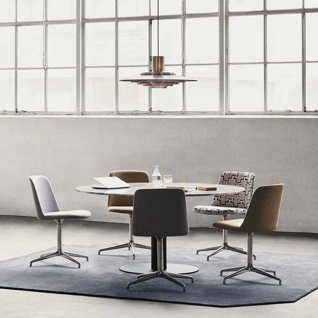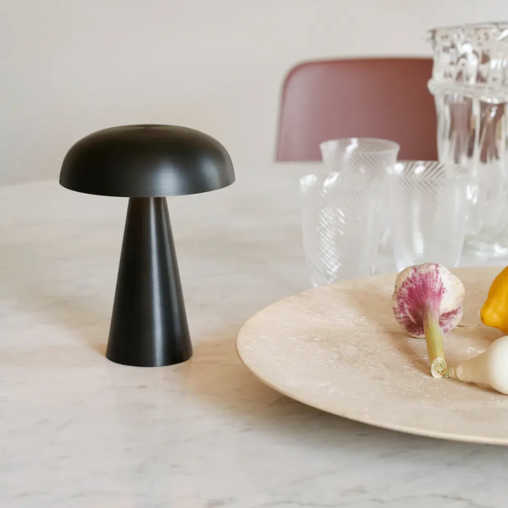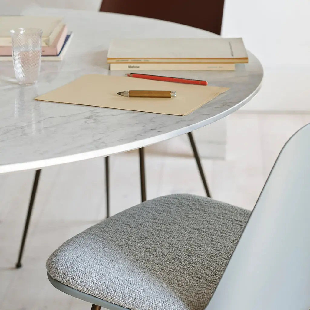 Sitting within the wider In Between collection, this elegant dining table is now available with a luxe marble top. Choose between Nero Marquina or Bianco Carrara marble in either black or white for a sleek statement piece. The rounded base comes in matte black or a bronzed metal.