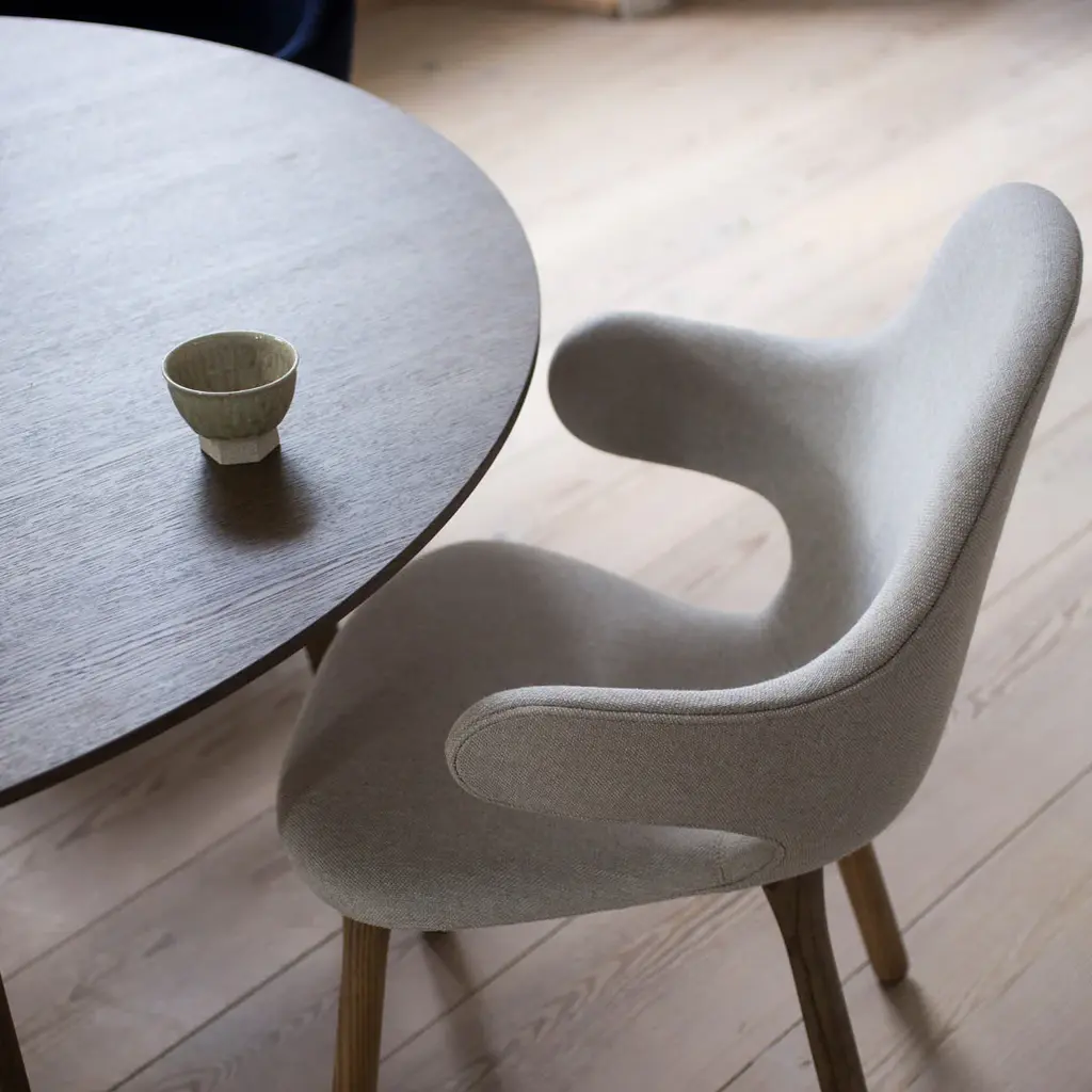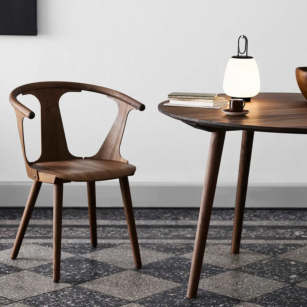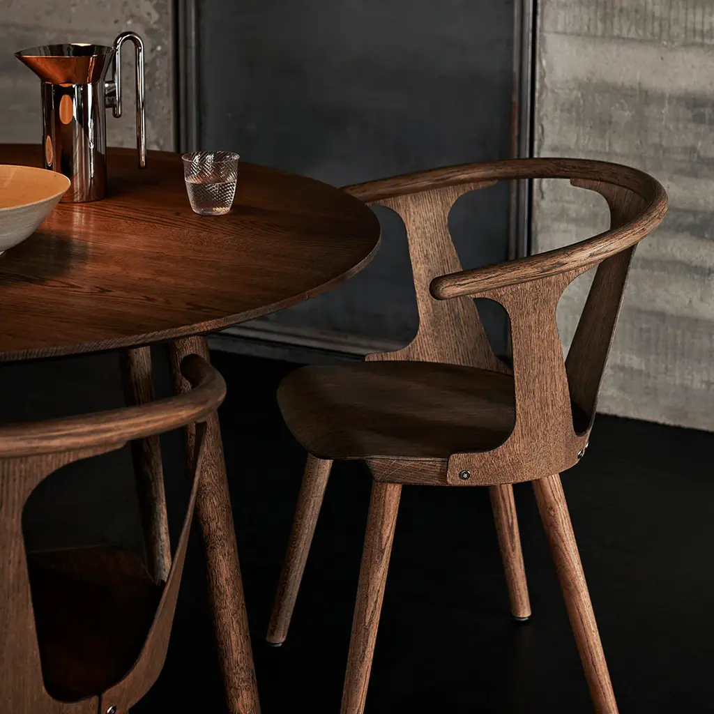 "The In Between Table is a thing of beauty," says Martin Kornbek Hansen, the founder of &Tradition, "the solid oak table is beautifully crafted to produce a contemporary dining table, making it a natural extension of the In Between collection." The In Between chair was the first chair to be added to the &Tradition stable of furniture and Kallio has reinterpreted certain aspects of the chair in the creation of the table. The curvature of the circular table is for example reminiscent of the negative space in the form of the chair's back rest. Similarly the angles of the legs of the table reflect the angles of the chair legs.