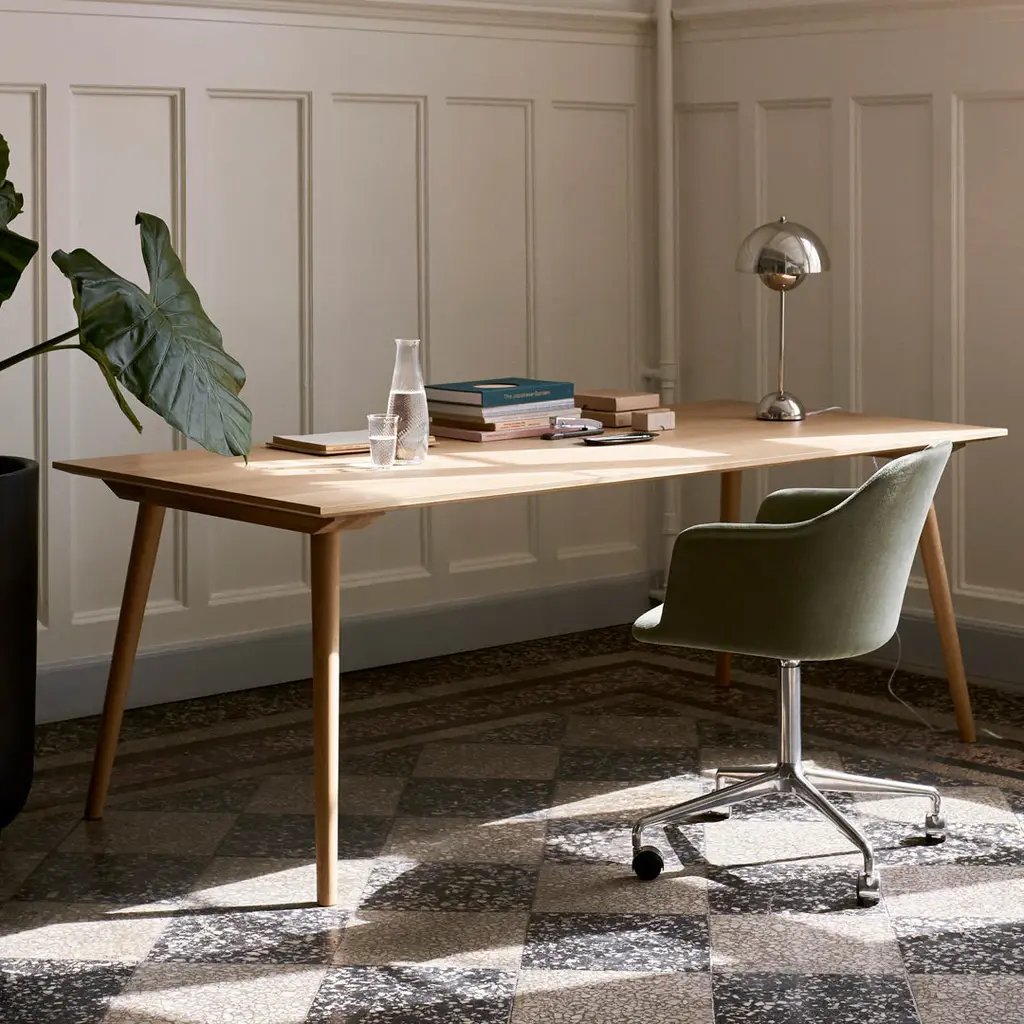 In a desire to design a table that blends into a space without taking up much space, Sami Kallio created the In Between Table. A partner to his In Between Chair, the legs of the table echo the same angle as the front legs of the chair. At the same time, the table's slim silhouette and absence of ornamentation make it an ideal match for any chair - in any setting. The In Between Table is a mix of traditional wood craftsmanship, involving compression molding and woodturning, together with innovative veneer techniques. As such, it is an homage to Kallio's Nordic heritage and training in wood making, as well as his modern, Scandinavian sense of simplicity. In Between SK6 Dining Table Available Here