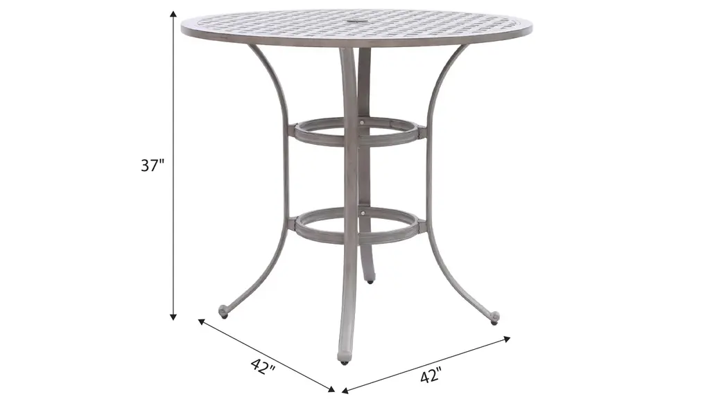 Gather your guests and get outdoors to dine in style with the Indigo Bay round counter-height dining table. A traditional design with trellis-patterned powder-coated aluminum brings a touch of understated elegance to any backyard retreat. Pair it with the matching counter-height stools for a designer look.