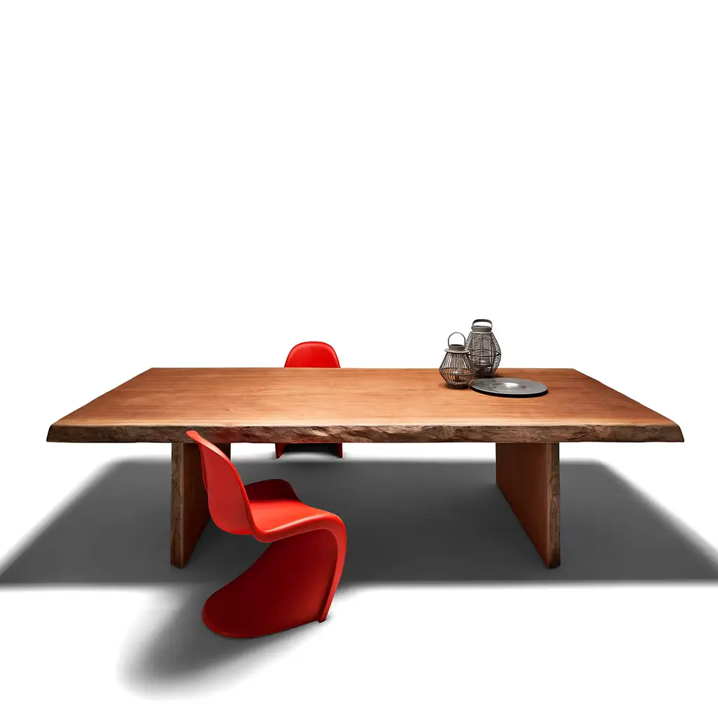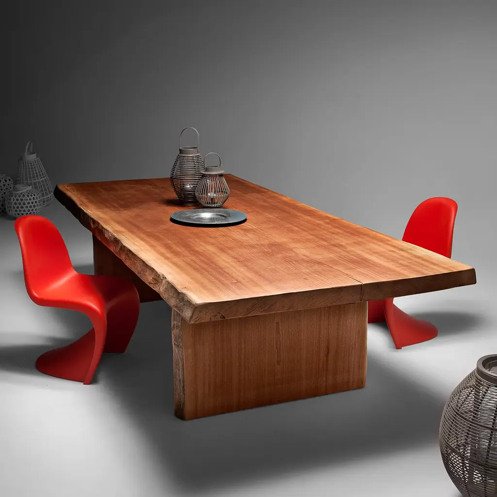 A splendid design of clean and minimalist lines that celebrates the natural essence of wood, this dining table by Ludovica and Roberto Palomba is entirely crafted by hand of precious mahogany wood. An outdoor cover is recommended to protect the piece when left outside, please contact the Concierge for details. Customizable upon request. If the products are placed completely outside, nightcovers that can be purchased at an extra price are recommended. Please contact the Concierge for further information and options.