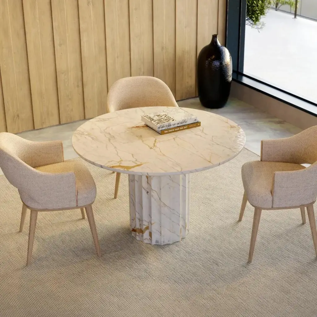 Indoor/outdoor Plisse' Round Table With Faux Marble Finish - Seats 6