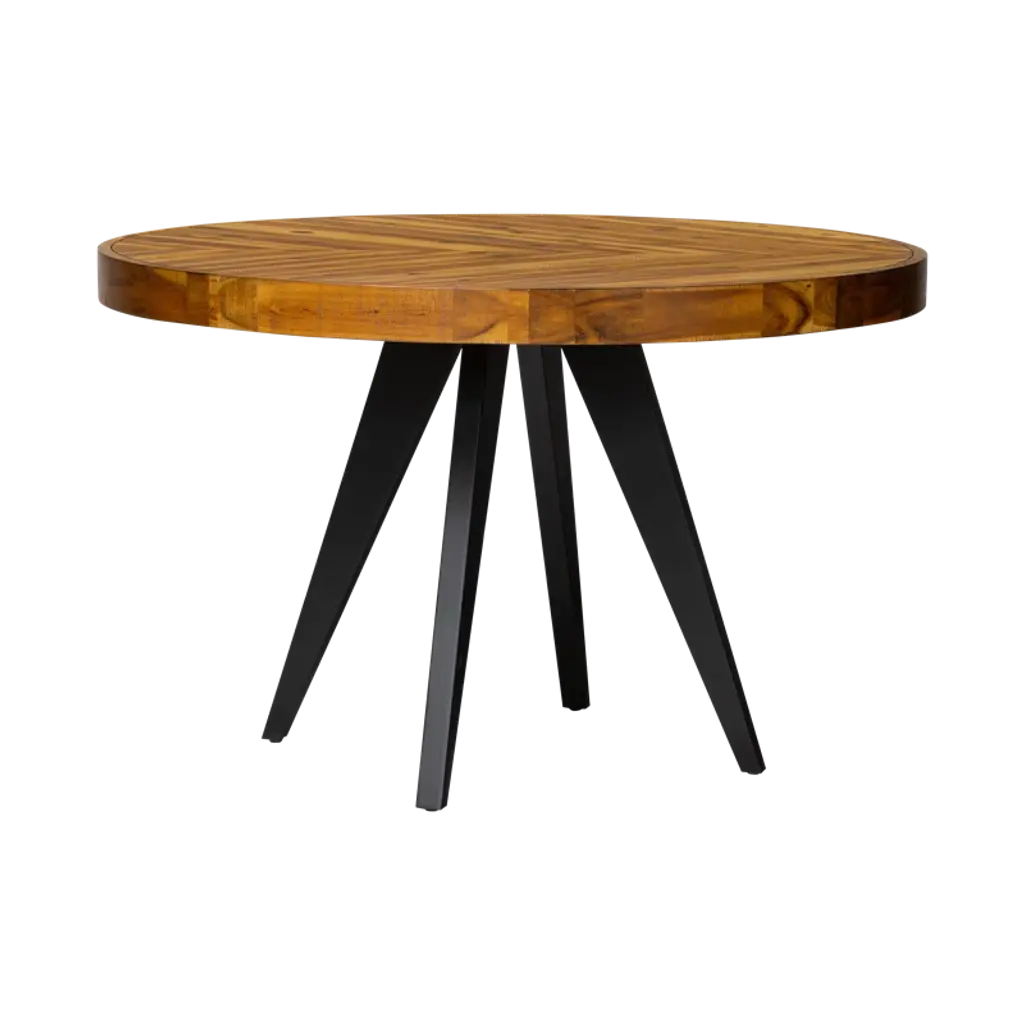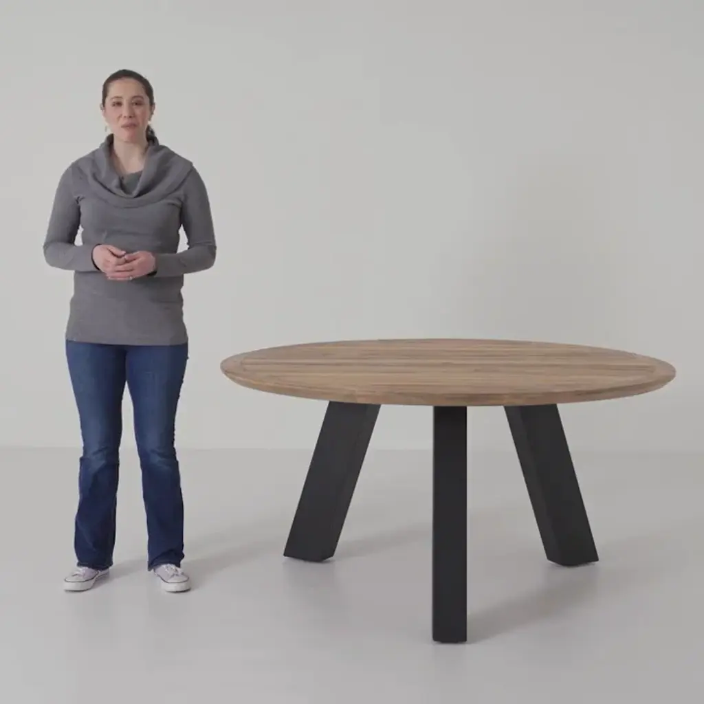 Crafted from reclaimed solid wood, this unique round dining table brings a touch of rustic charm to your entertaining space. Its powder-coated aluminum frame provides a sturdy base, while the weathered wood top, full of natural variations, adds a dash of character. This table comfortably seats six, making it perfect for family meals or intimate dinner parties. Plus, its water, UV and rust resistance ensures it's ready for both indoor and outdoor use. Let's dine differently!