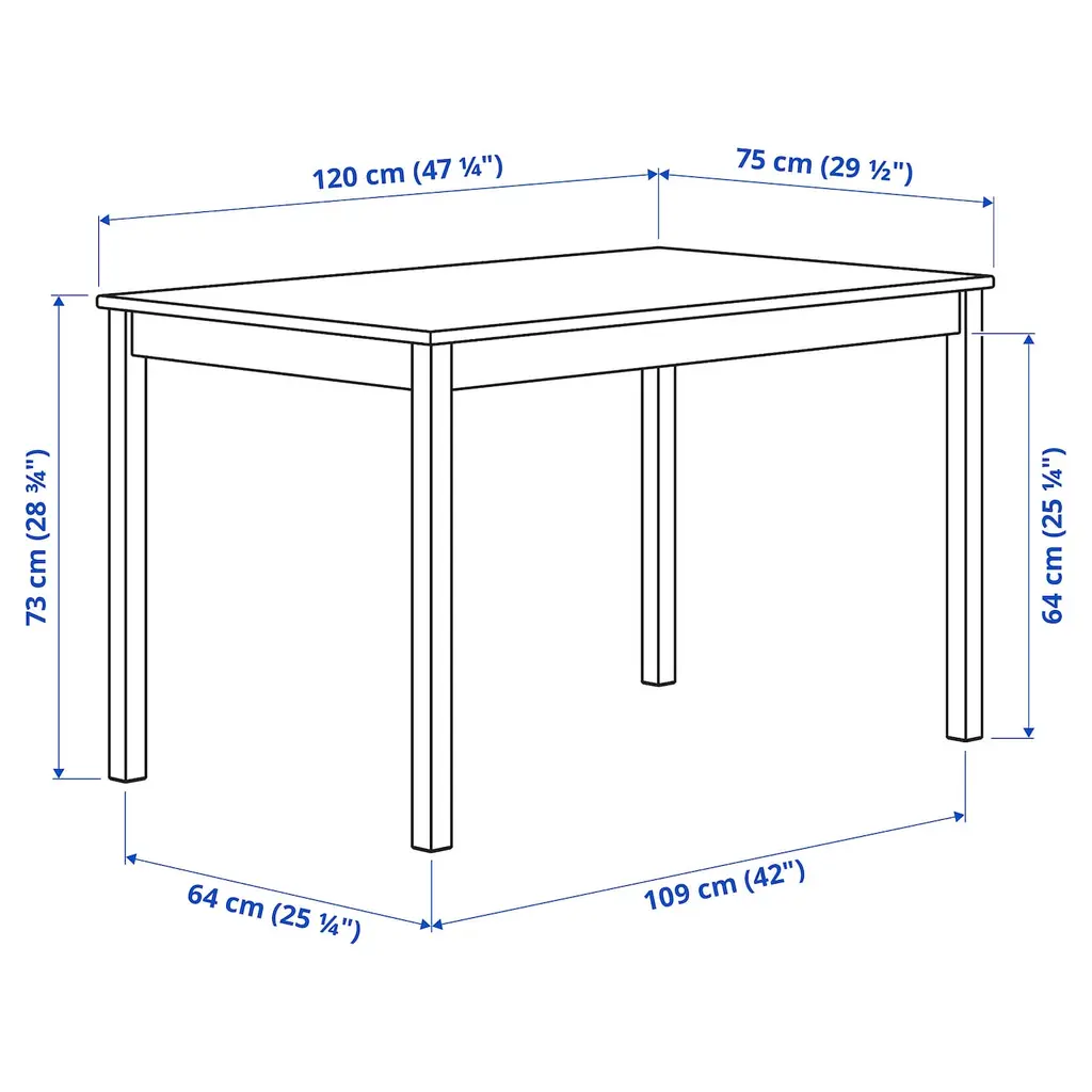 INGO Table - pine 47 1/4x29 1/2 ". Seats 4. Recommended for indoor use only.