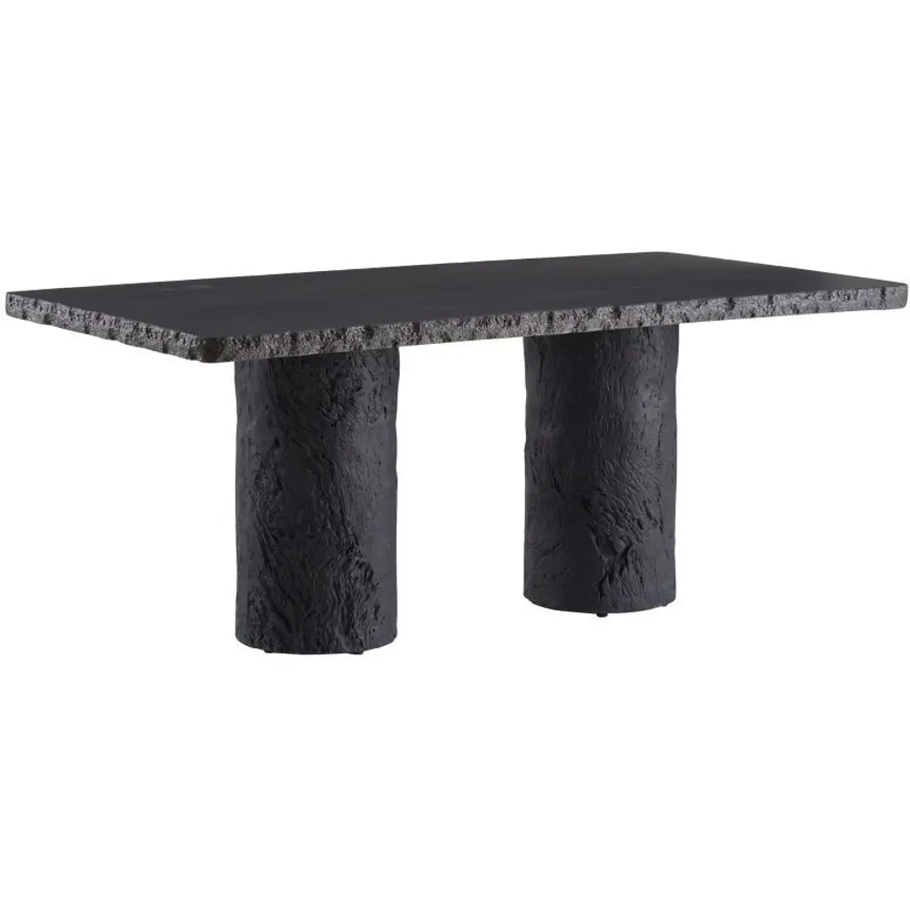 The Ingrid Dining Table from Oggetti Luce is a robust yet straightforward piece that grounds interior décor while offering ample room for dining experiences. Made entirely of chestnut wood, this piece presents a Danish-inspired silhouette as it stands atop two thick legs that taper subtly as they rise to a rectangular top. Its curved edges lend a softness to its hefty aesthetic while its natural finish brings warmth and craftsmanship to its design.
