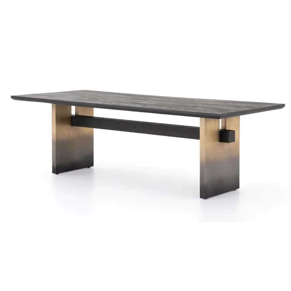 The Instinct dining table is a captivating centerpiece exquisitely crafted from oak and adorned with a white waxed finish. This expansive table draws the eye with its striking geometric design, a remarkable work of art. It is important to note that the wax finish requires reapplication every 6-12 months to ensure the table's longevity and enduring beauty.