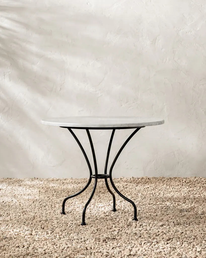 Officina Ciani brings together the rustic quality of stainless steel with the modern elegance of Carrara marble to create a table that feels at home no matter where it's placed. A versatile and striking addition to any outdoor patio, terrace, and veranda, the sinuous "wavy" legs embellished with spherical ferrules are the distinctive feature of the Intreccio Collection. The zinc treatment and powdered varnish guarantee strength and durability.
