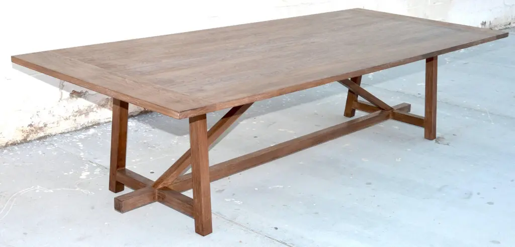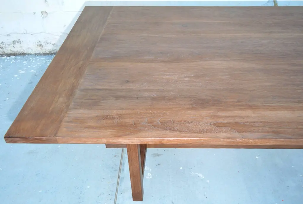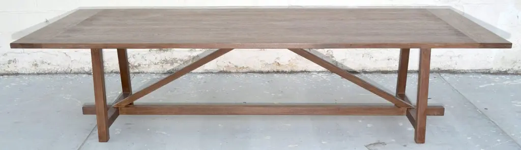 Custom dining table built in aged walnut. This is one of many tables we build to order using hand selected planks. The specific size shown here is 120 inches x 48 inches x 30 inches H, in 'dry aged' American black walnut. This table also has the option of expandable breadboard ends.Because each table is bench-made in our own Los Angeles workshop you can influence all aspects of design, including size, wood species and finish. We use only traditional carpentry techniques, no nails or metal fasteners of any kind. Just mortise and tenon construction reinforced with hand-cut wooden dowels.If you require customized overhang dimensions please stipulate with order.