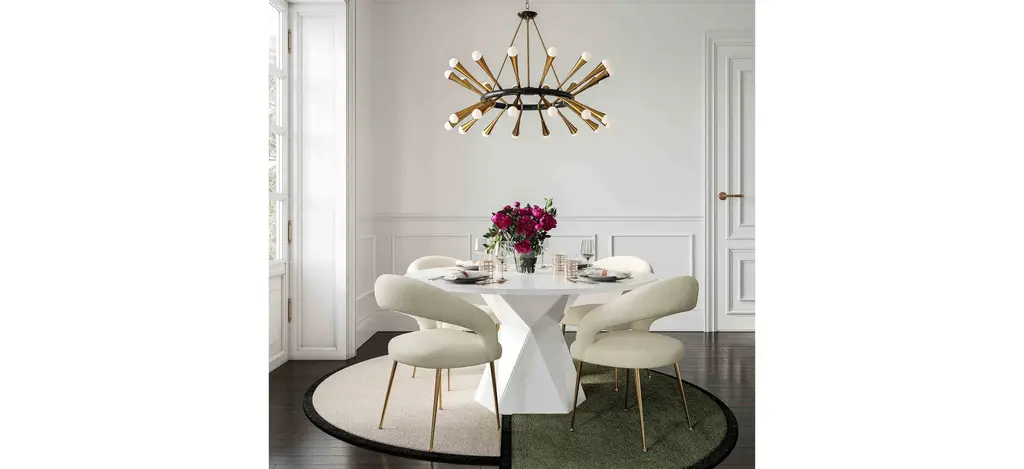 The Iris Glass Dining Table will be the breathtaking centerpiece of your dining room. This sturdy wooden table features a unique geometric base and is finished with a layer of glass. Its sculptural and dynamic silhouette will add excitement and energy to your space!
