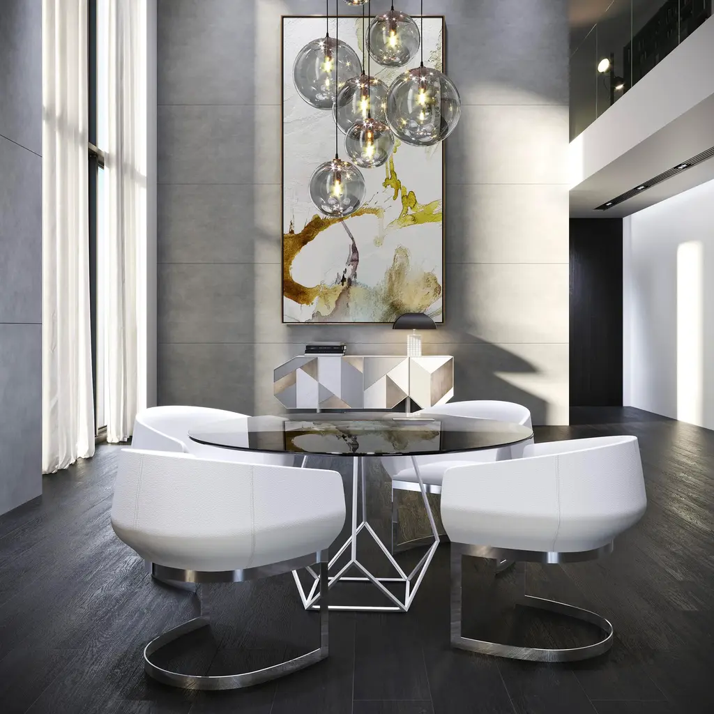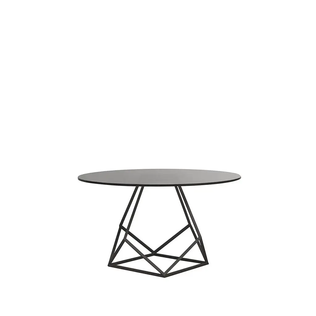 - Dining table with an iron base in a textured grey matte finish - Comes with a grey crystal top of 10 mm thick and 150 cm in diameter - The minimalist design combines functionality with care in every detail - It is precisely the details that grant exclusivity and character to this piece - The most exclusive and unique works of art are created by combining artisan manufacturing methods and state-of-the-art technology - Using top-quality materials to ensure that each piece symbolizes luxury and elegance Signed by Maker,Signed by Maker