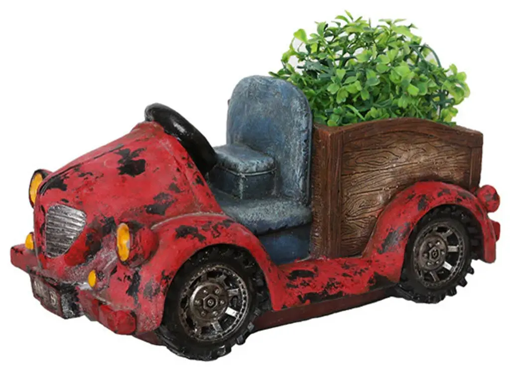 Measures 8.5-Inches high and 13.5-Inches wide and 8.5-Inches deepFull metal construction ensures that this truck, much like it''s larger working-farm counterparts, is built to last.Ideal size to display on a kitchen or hall table.The bed of the truck can be filled with your decor items or small planter pot of choice; the flowers shown in the product images do not come with the truck and are for illustrative purposes only.Beep beep! - a delightful delivery awaits! This charming little truck is diligently engaged in the task of delivering a wide array of items, from your cherished blooms to essential condiments for your dining pleasure. Adorned with a rustic, farmhouse-inspired weathered zinc finish, this petite vehicle bears an uncanny resemblance to its life-sized counterpart, complete with meticulously sculpted running boards and headlights. The truck''s bed offers ample space to cradle your beloved small planter, allowing you to nestle freshly picked flowers, lifelike silk blooms, or even charming succulents with snug perfection. Whether you''re crafting a country-themed decor scheme or utilizing it as a handy holder for your salt and pepper shakers, this playful truck promises to win your heart. Measuring at a height of 8.5 inches, a width of 13.5 inches, and a depth of 8.5 inches, it strikes the perfect balance between form and function. This endearing piece not only adds a touch of rustic elegance to your space but also serves as a versatile decorative companion for your home. inch