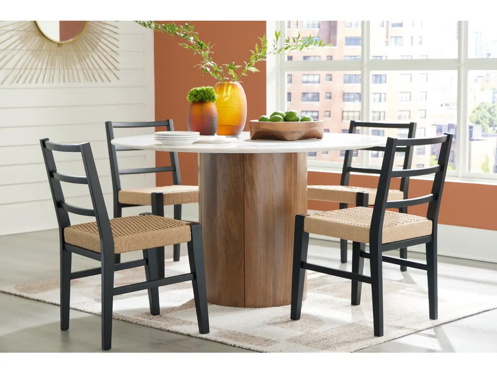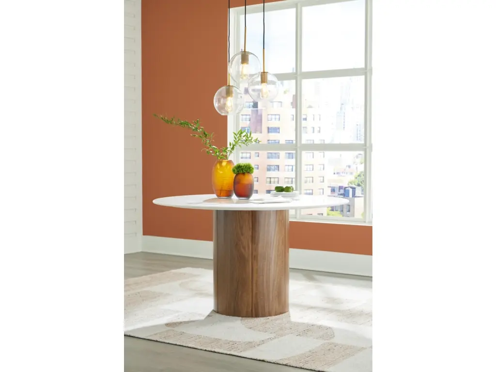 With its back-to-nature sensibility, the Isanti dining table is a natural fit for outfitting your modern space. A clean-lined design lets the beautifully organic quality of the mango wood shine through, complemented by the sleek refinement of its marble top. This delicious design is perfect for dining, family game night or conversations that last well into the evening.