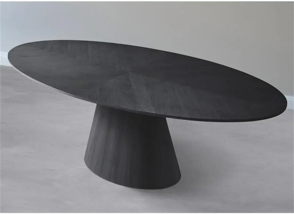 Give your dining area a natural look with this Ivan oak black dining table. Crafted from wood and featuring an oval design, this table is both sturdy and roomy so you can entertain plenty of guests. Its white oak wood veneer finish creates a natural look inherent to any dining space. Its mid-century design is perfect for contemporary, classic, and rustic homes, making it a versatile piece that fits into any kitchen or dining room.
