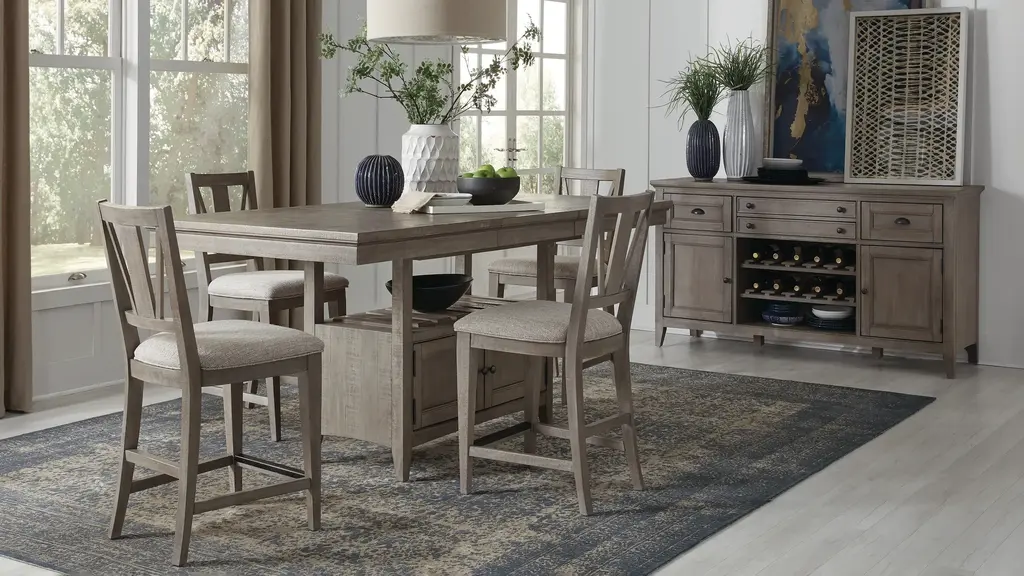 Ivy Ridge Counter Table collection fits every home d_cor style. Its timeless character renders it a true design essential and includes raised beaded trim and framed-panel elements and straight and shaker-inspired legs. A fresh Dovetail Grey finish highlights the clean lines of these dining pieces while Weathered Bronze hardware adds a finishing touch. Whether you're in the city and country or suburbs-you're sure to love the authentic appeal of this tasteful collection.