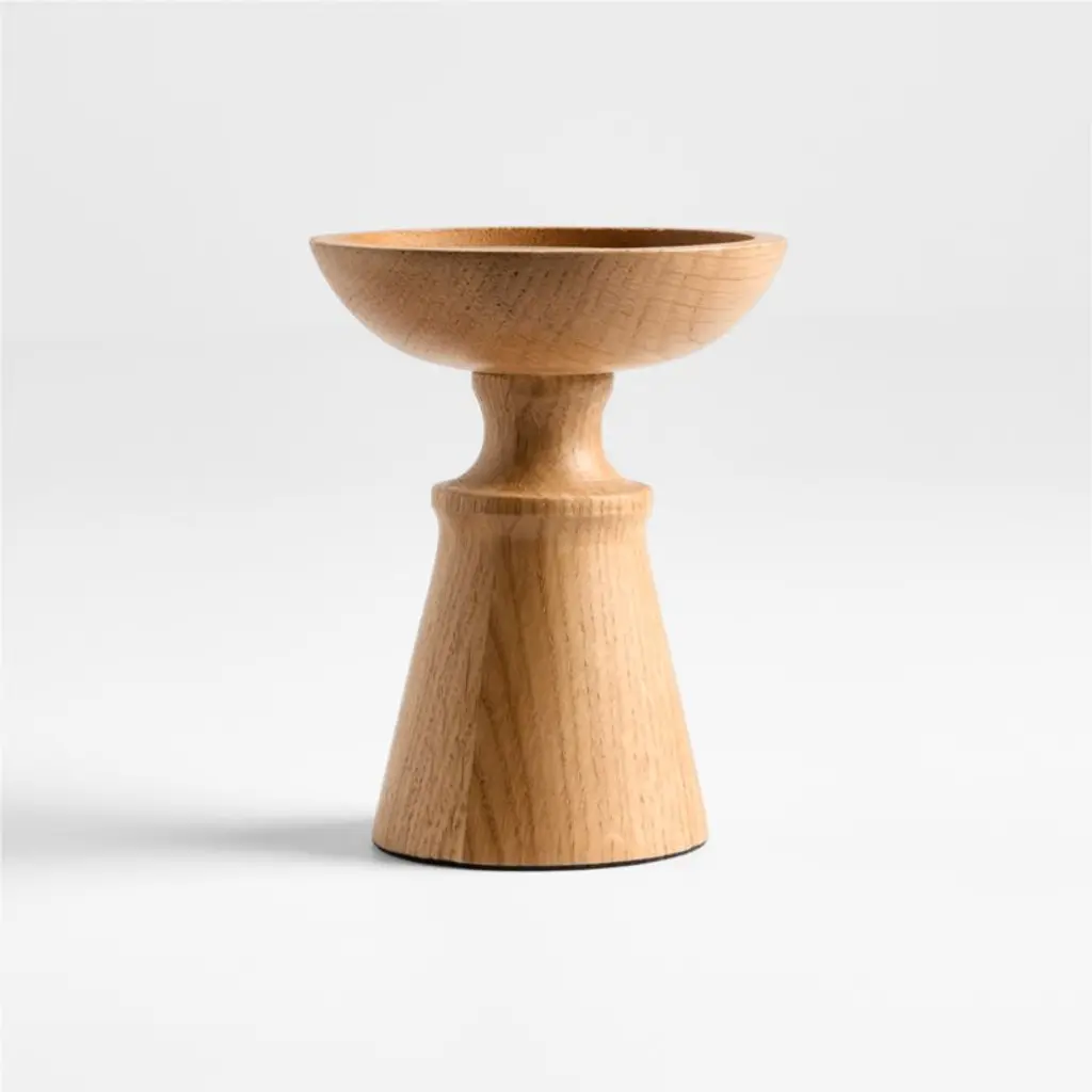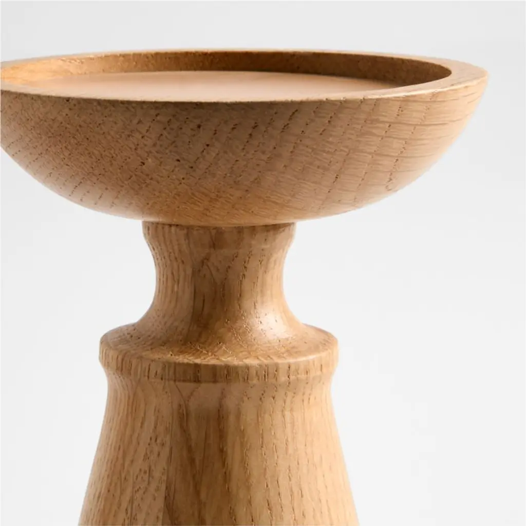 Our Izumo collection features beautifully simple designs inspired by Japanese woodworking. Crafted of sustainably sourced solid oak, this turned candle holder balances curved forms and clean lines. The height, bold silhouette and natural finish bring warm elegance to a credenza, mantel or dining table. Pair with our Izumo vases and ebonized pillar holders for a striking display.