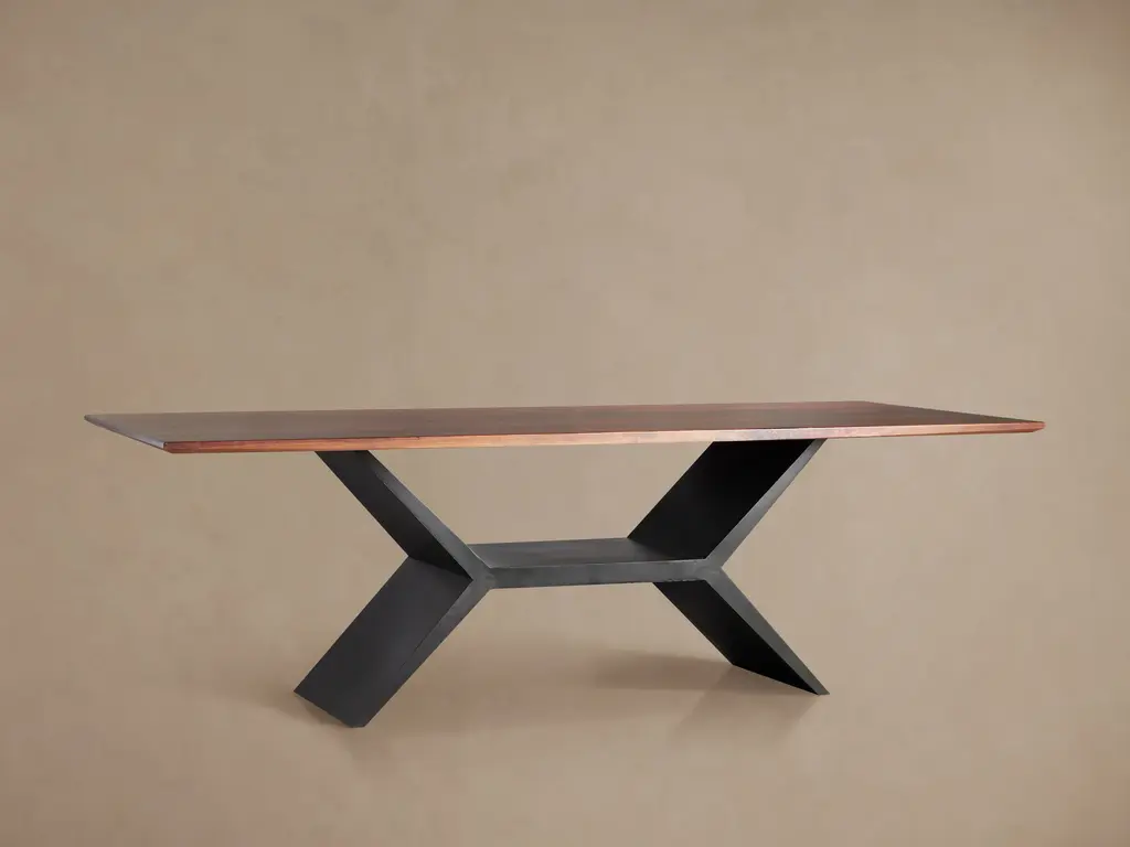 Our Jacob Dining Collection celebrates craftsmanship with sleek and modern style, bringing natural wood into contemporary dining spaces. Tabletops are made from solid oak and walnut, handcrafted by a community of Amish artisans. Oils, stains, and varnishes are applied to each tabletop by hand, creating high-gloss finishes that accentuate the wood’s natural beauty. Vertex Table Bases are made from iron in a subtle, flat black finish to complement the beautiful tones of the wood.