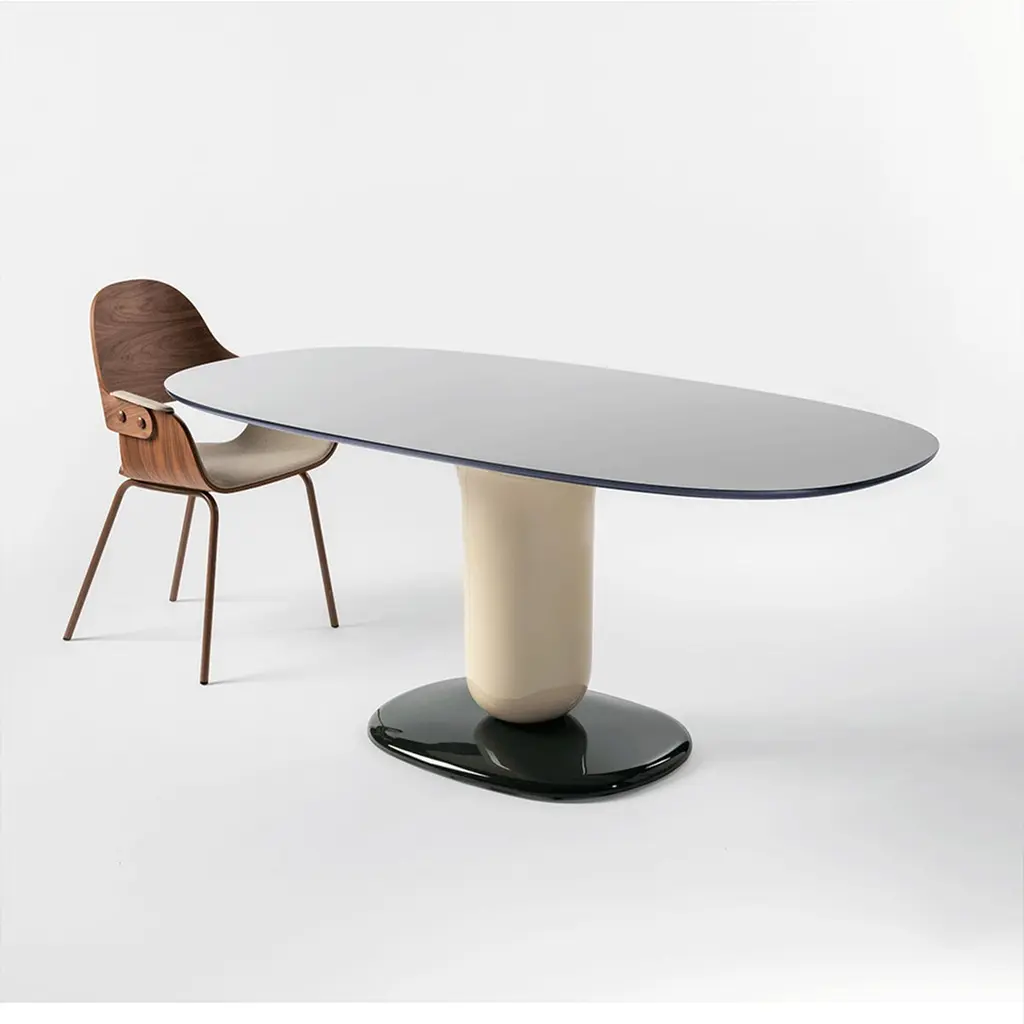 Table designed by Jaime Hayon in 2021, added to the Explorer collection that started in 2019.Manufactured by BD Barcelona in Spain.As a continuation of the playful explorer table series and following its elegant beauty, we are proud to introduce the new explorer dining table, enhancing the sculptural identity of the collection and upgrading its function.Materials and finishes:Interior painted steel structure. Central leg and base in fibreglass with a gloss (strengthened gel for durability) finish. MDF veneered table top in Polaris with a matte finish by Abet Laminati. The underside and the borders of the top are lacquered in a matte finish. Multicolor Beige-Sobre: estratificado Polaris 2901 (Arena)-Sobre parte inferior: Ral 8017 Mate (Marrón chocolate)-Cuerpo: Ral 1001 Gloss (Beige)-Base: Ral 8015 Gloss (Marrón castaño) Optional Top in Polaris 2902 Nearly Black in all combinations.Important information regarding images of products: Please note that some of the images show other colors and variations of the model, these images are only to present interior design proposals. The item that is selling is on the first image. Important information regarding color(s) of products: Actual colors may vary. This is due to the fact that every computer monitor, laptop, tablet and phone screen has a different capability to display colors and that everyone sees these colors differently. We try to edit our photos to show all of our products as life-like as possible, but please understand the actual color may vary slightly from your monitorAbout the designer:Spanish artist-designer Jaime Hayon was born in Madrid in 1974. His artistic vision was first fully exposed in the ‘Mediterranean Digital Baroque’ and ‘Mon Cirque’ installations. These collections put Jaime at the forefront of a new wave that blurred the lines between art, decoration and design, also added a renaissance in finely-crafted, intricate objects within the context of contemporary design culture.About BD Barcelona:Accompanied with artisanal processes instead of mass production, their products always have more proximity to art than industrial design. Characterised by superior quality, short-series productions (and on occasion limited editions), and unique pieces due to crafted manufacturing. In the 70’s, BD pleasantly surprised by editing Gaudí’s furniture for his famous buildings and in the early 90’s, BD again astounded by introducing an exclusive first collection of furniture and lamps designed by Dalí. Recently the collections and designers with an accentuated artistic profile like Jaime Hayon and Doshi Levien, continue to point the way where design and art meet together. Design meets Art. Since 1972.