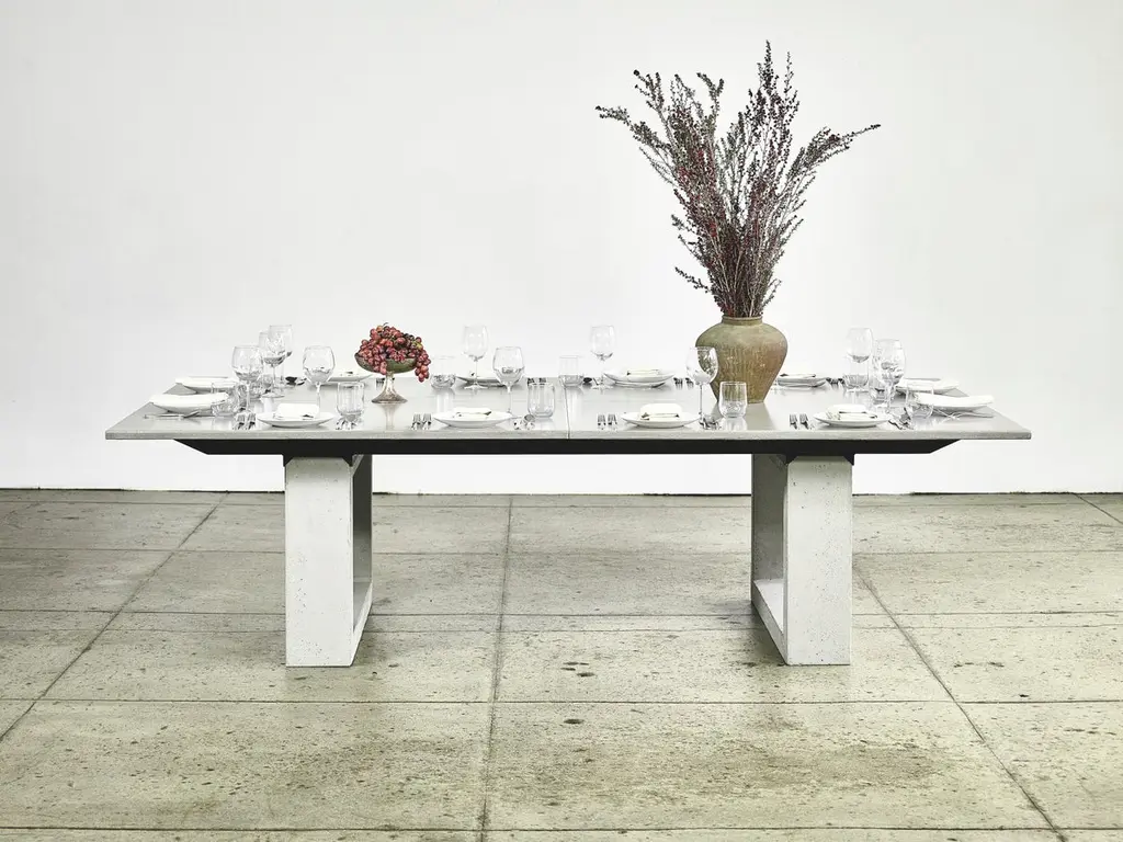 James de Wulf's commercial concrete ping-pong table, with a 1.5" top. Regulation sized with acid stained center line and carbon fiber reinforcement. A thicker top to withstand the elements and more frequent gameplay. Add seating to welcome guests as a dining table.Tables are sealed with a unique finishing wax and will develop a gradual patina adding to the beauty of the material’s character over time. Suitable for indoor and outdoor use. Available colors: • Natural tone • Light grey • Dark grey• Black• Creamy whitePremium ColorAccessories included:• Removable net• 4x stiga flow outdoor paddles• 6x stiga 3-star ballsOutdoor cover recommended. Custom covers available.