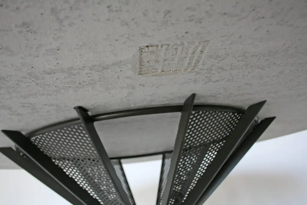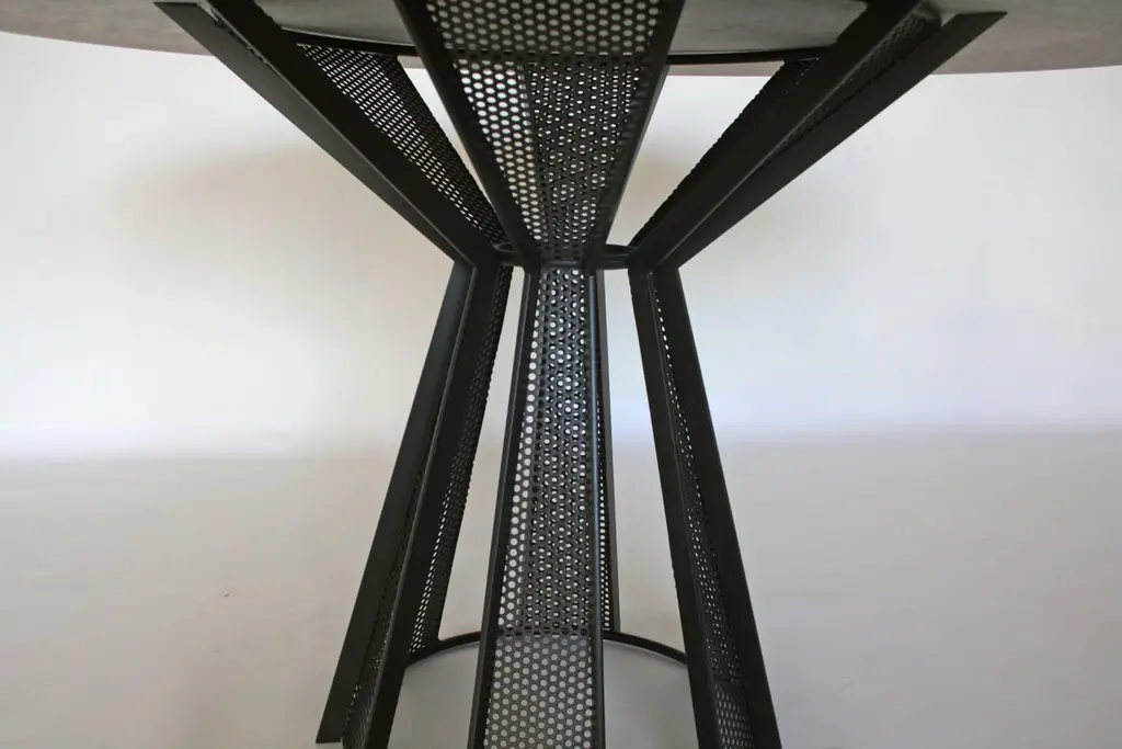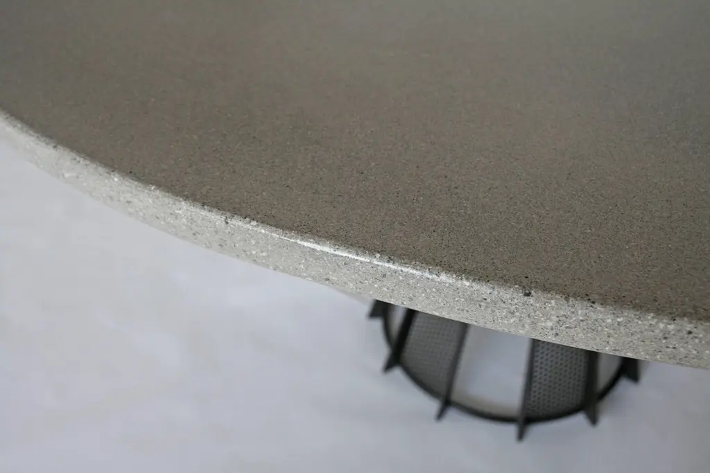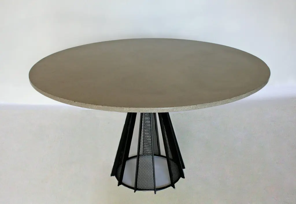 A simple and classic design combining French Country with refined industrial. Concrete table top with powder coated steel base. Suitable for indoor and outdoor use.Shown in 60". Available in 48", 72" and 82" diameter. Concrete available in Natural Tone (as shown), Light Grey, Dark Grey, White, and Black.Powder coat options available.James de Wulf has been widely recognized for his original and innovative work with concrete design and rapidly became known for his ability to fuse advanced concrete technology with aesthetic, modern, and natural concrete forms to constitute functional art.