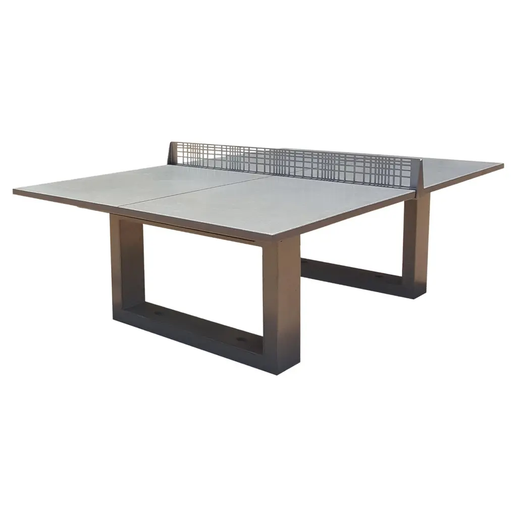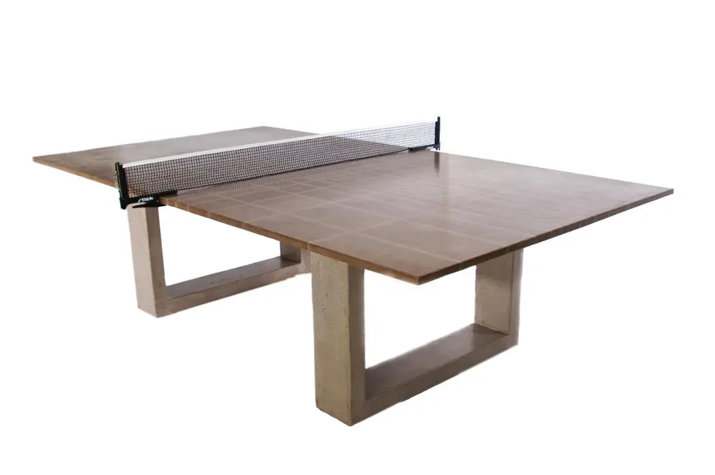 James de Wulf custom concrete Ping-Pong table, decorated with the flow of Fibonacci.Regulation size with demarcated center line and carbon fiber reinforcement.Remove the netting, add seating to welcome guests as a dining table.This playful, yet refined piece will become a staple to entertain. Tables are sealed with a unique finishing wax and will develop a gradual patina adding to the beauty of the material’s character over time.Suitable for indoor and outdoor use.Available colors:• Please select as Fibonacci lines are offered 2 different ways: Stained (Sepia throughout) or Inverted (Sepia Lines)Premium concrete colors availableRemovable net and accessories included:• 4 Stiga Flow outdoor paddles• Pack of 6x Stiga 3-star balls.