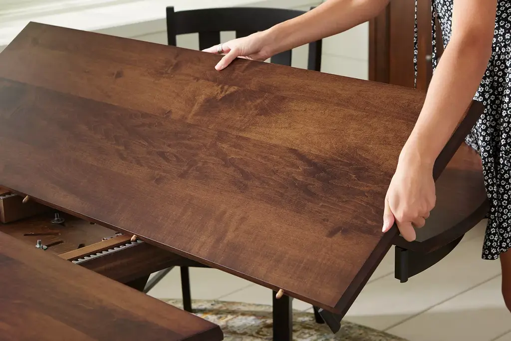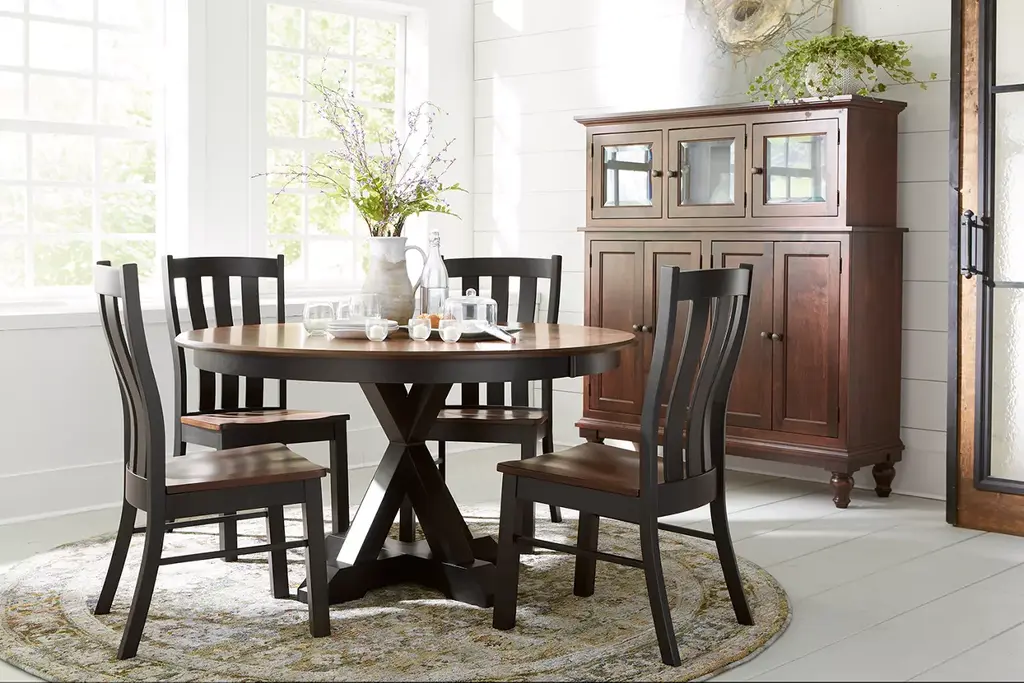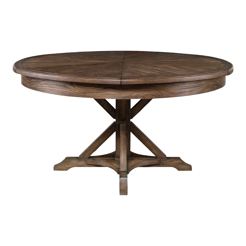 Our Jamestown dining table will be a staple for your future gatherings. Crafted from solid maple wood, this classic piece sits on a pedestal base and can be expanded to make space for everyone and more. This piece is available in a 36", 42", 48" and 54" table size.