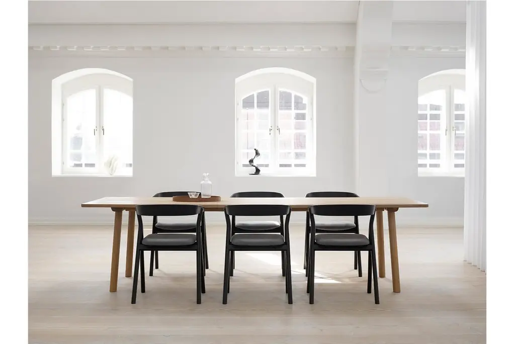 Jasper Morrison Taro dining table, rectangularTaro is a series of solid oak tables created with a strong focus on daily function and use, whether in the kitchen, dining area or meeting room. With machined grooves along its length, the table top resembles a traditional plank table, but has been executed in a refined and knotless selection of oak that will acquire the most beautiful patina.