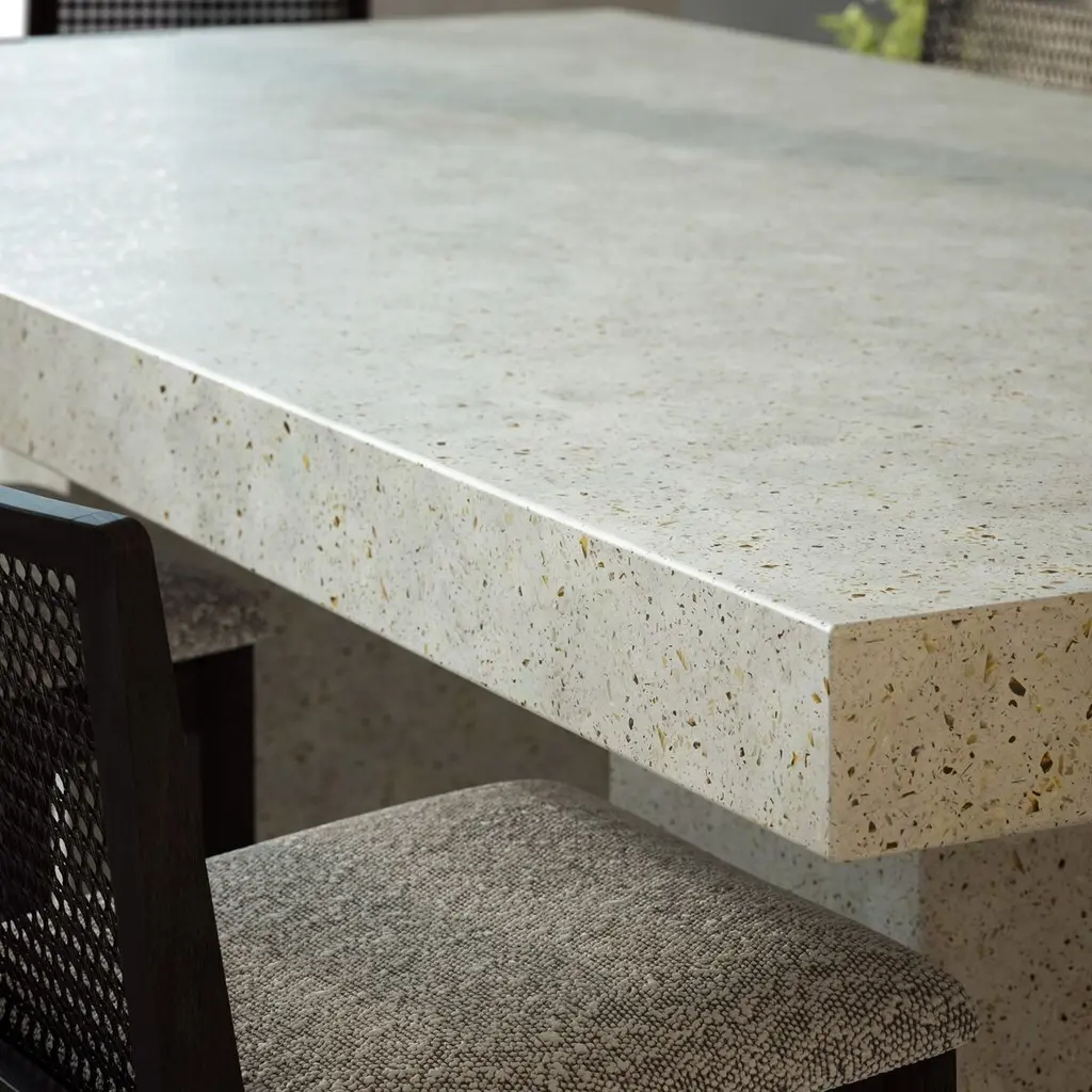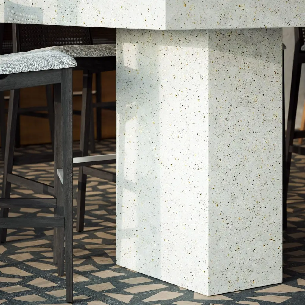 The Jaxon Table collection is the ultimate focal point that any dining space requires. Each table is handcrafted in Vietnam by skilled artisans using natural materials, showcasing a rectangular top supported by robust pedestal legs. With a unique patina reflecting natural markings and varied tones, each piece boasts character and charm. Constructed from durable fiber-reinforced concrete, these tables seamlessly blend a refined aesthetic with an industrial edge. Embracing their inherent charm, small hairline cracks and imperfections contribute to their distinctive allure. Suitable for both indoor and outdoor spaces, each piece is outdoor friendly and artisan crafted, making them a perfect addition to any setting.