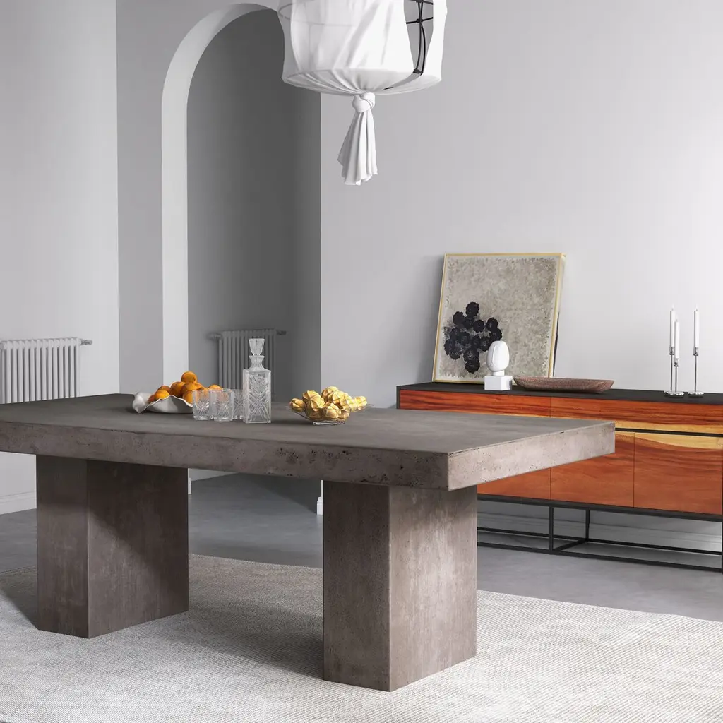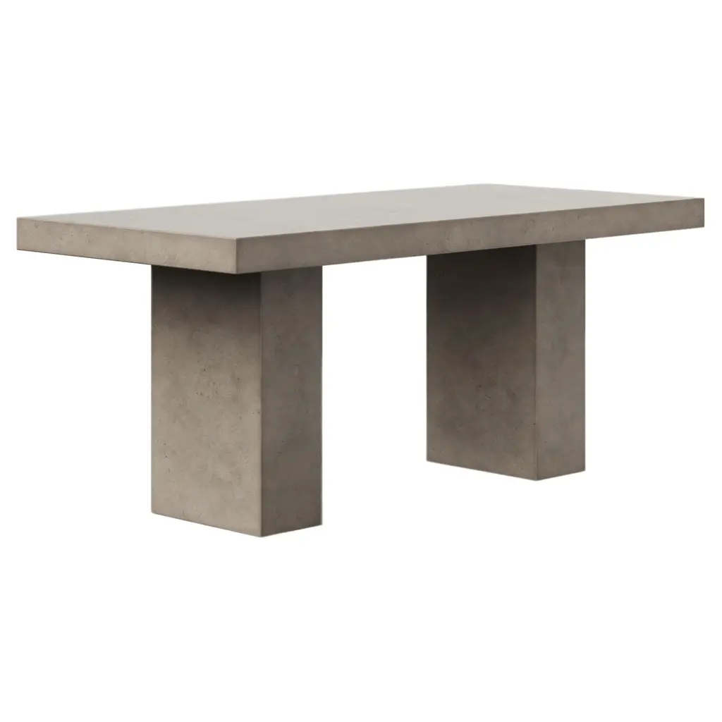 The Jaxon Table collection is the ultimate focal point that any dining space requires. Each table is handcrafted in Vietnam by skilled artisans using natural materials, showcasing a rectangular top supported by robust pedestal legs. With a unique patina reflecting natural markings and varied tones, each piece boasts character and charm. Constructed from durable fiber-reinforced concrete, these tables seamlessly blend a refined aesthetic with an industrial edge. Embracing their inherent charm, small hairline cracks and imperfections contribute to their distinctive allure. Suitable for both indoor and outdoor spaces, each piece is outdoor friendly and artisan crafted, making them a perfect addition to any setting.