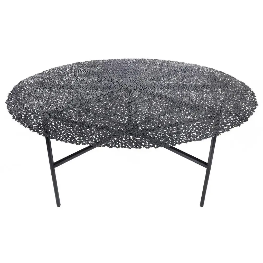 Jean black patina bronze dining table by fred and juul dimensions: ø 180 x h 74 cm. Materials: black patinated bronze. Custom sizes, materials or finishes are available on request. Please contact us. A swarm of butterflies as delicate as a lace table cloth forms an everlasting table top in lost wax cast brass or bronze. A sculptural table for both indoor and outdoor use. Fred&juul, short for federico minarelli and julie janssen, are two architects who decided working as architects isn’t for them. It was when designing custom furniture for their clients and developing it with the amazingly skilled local artisans that they truly found joy in their work. So, in 2012 they decided to solely focus on that and launched their first lighting and furniture collection. With the exception of the renovation of the old tuscan farmhouse that would become their home and studio, a labor of sorrow, but mostly love (see the result on the press page!). What sets them apart is how they see and use their materials of choice: bronze, brass, wood and stone. Their designs value the inherent nature of these materials and how they are meticulously crafted, like the grainy, clouded surface of their raffaele light in sandcast brass or the juxtaposed oak grains in the marquetry of their maurits table. Starring all these aspects in the story of a piece, is what makes it unique and last. Over the years they have increasingly worked with interior designers on custom pieces for high end projects all over the world, thanks to their attention for detail, refined aesthetic sense and collaboration with the best highly specialized craftsmen tuscany has to offer.