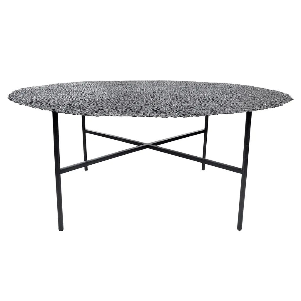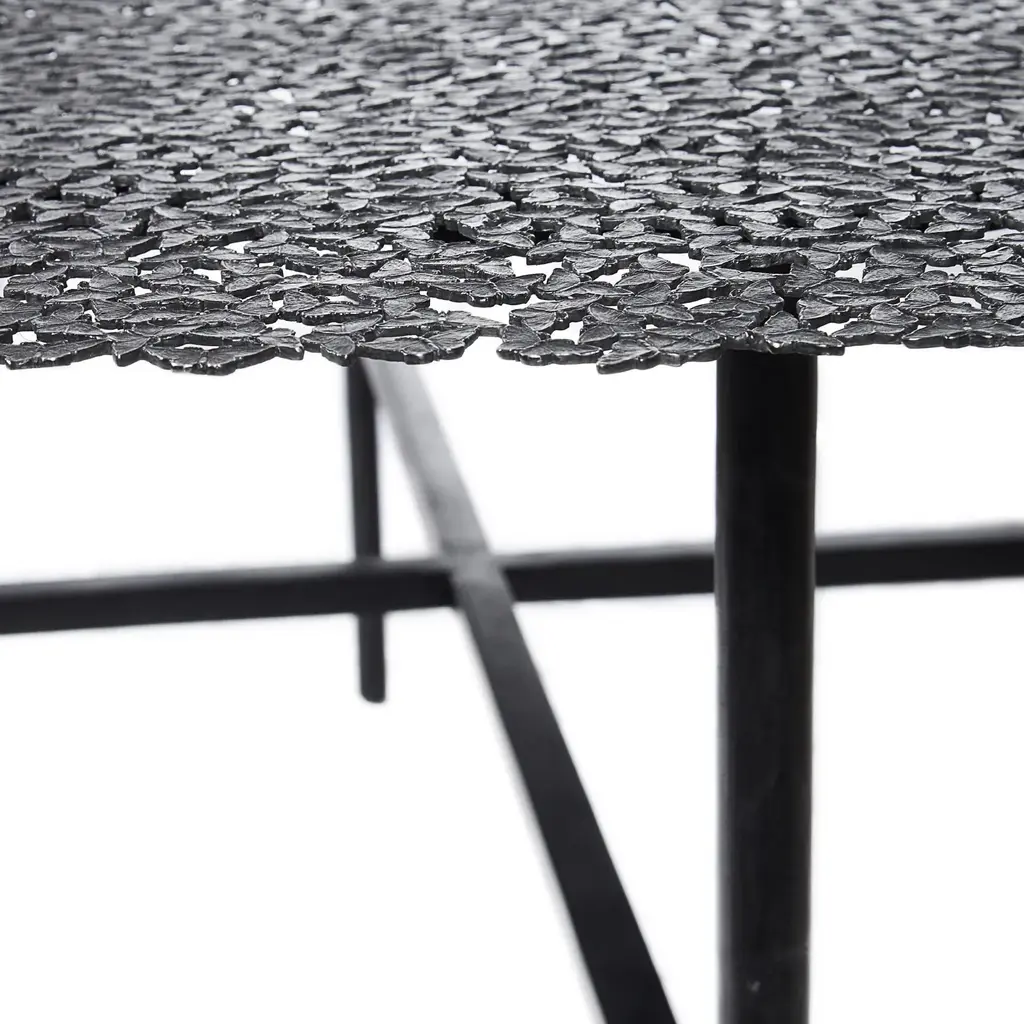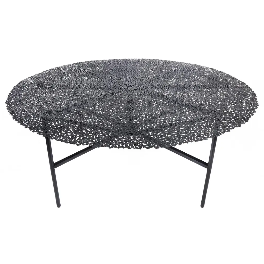 A swarm of butterflies as delicate as a lace table cloth forms an everlasting tabletop in blackened brass, lost wax cast by Italian master craftsmen. A sculptural table for both indoor and outdoor use. Signed by Maker