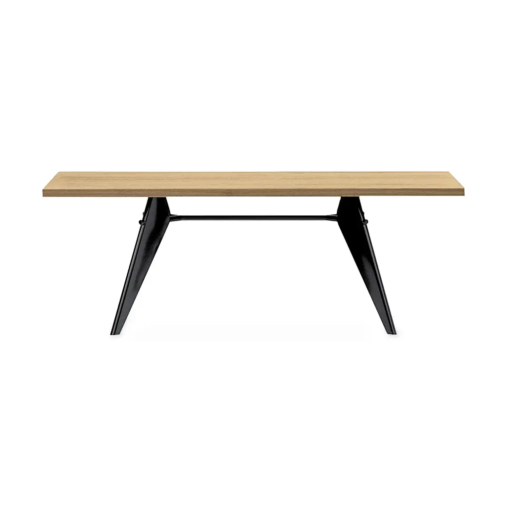 A sleek, statement-making table from a designer in MoMA’s collection. Give your dining room a chic makeover with this mid-century modern marvel. Conceived by renowned designer Jean Prouvé in 1950, the EM Table is crafted in Germany with a solid wood top and angled, powder-coated steel legs. The EM Table has an intriguing history: It accompanied Prouvé’s Maison Tropicale project, a prefabricated metal housing system developed for the Republic of the Congo. The table takes its cues from the materials and construction of the house, utilizing folded sheet steel for its streamlined legs, connected by a steel stretcher. As stylish as it is functional, the EM is an ideal dining table that’s large enough to seat up to ten people. Both Jean Prouvé and the chair’s manufacturer, Vitra, are represented in MoMA’s collection.