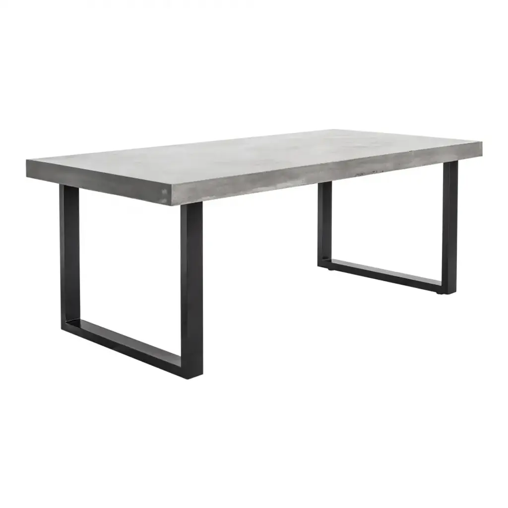 Perfect for indoors or out, the Jedrik is a cool cement and fiber table with black steel legs.