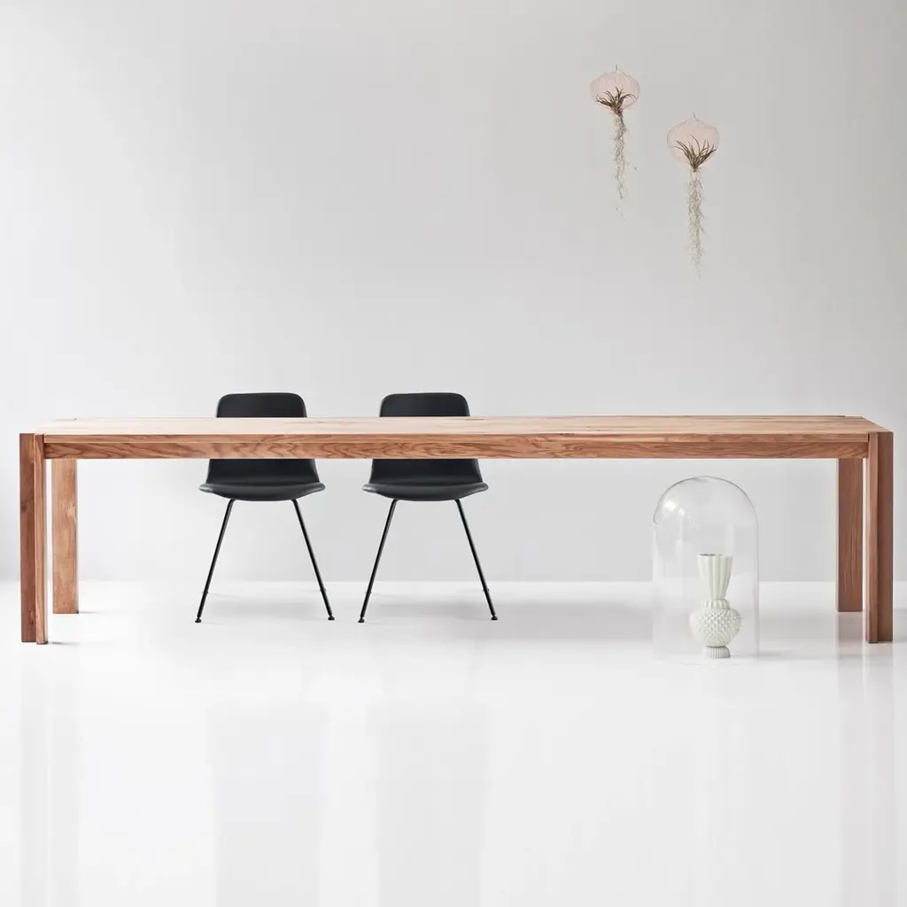 The JEPPE UTZON TABLE #1 balances a sublime contrast between the naked wooden material and the selected crafted details. With sizes up to 300 cm, the table is robust enough to serve a natural gathering point in both meeting rooms and dining halls, yet detailed enough to stand out. JEPPE UTZON TABLE #1 is a solid table made as a "sandwich construction", which significantly minimizes natural movements compared to other solid tables. Beneath the table is a discrete steel cable, which can be adjusted with an ordinary wrench to achieve stability and prevent deflection over the years. Jeppe Utzon has achieved international acclaim as an architect and designer, and the cross-creative DNA comes from no stranger. Jeppe Utzon's grandfather was a famed Danish architect Jørn Utzon - the architect and designer of the Sydney Opera House. As his grandfather, Jeppe Utzon allows detail and totality to work together in a unified expression that has genuine global appeal, and this design philosophy is truly embodied in JEPPE UTZON TABLE #1. Please note: This table is available without any extension, with 1 extension leaf or with 2 extension leaves. Each leaf adds 19.69" to the length of the table. Solid wood is a natural material and therefore it will work/change/react depending on the humidity, direct sunlight, heating etc. The thicker and wider the Table Top is, the more it will react, and small cracks and rough/irregular/uneven surfaces will occur. The construction of the JEPPE UTZON TABLE #1 changed per 04.12.2017. Models ordered after this date are not compatible with models ordered before.
