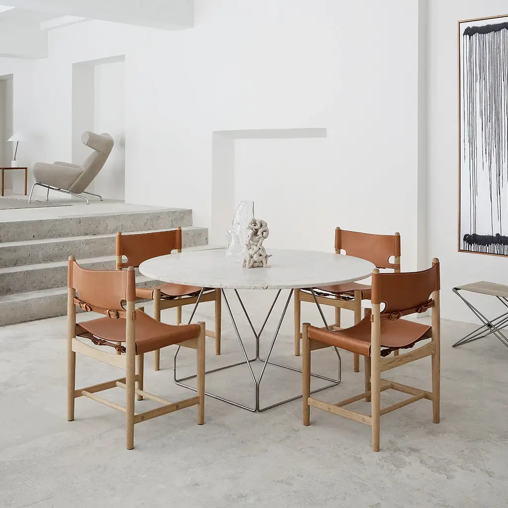 The JG Table expresses designer Jørgen Gammelgaard's desire to create a simple, elegant design with a supportive structure that would not limit the seating around the table. Providing remarkable stability, as well as an intriguing graphic aesthetic.