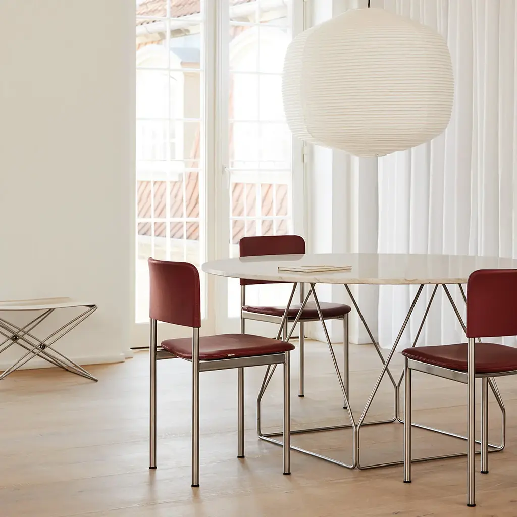 The JG Table expresses designer Jørgen Gammelgaard's desire to create a simple, elegant design with a supportive structure that would not limit the seating around the table. Providing remarkable stability, as well as an intriguing graphic aesthetic.