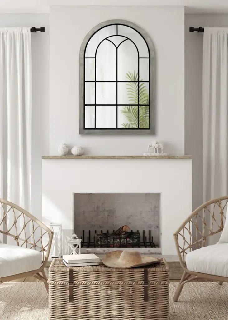 Joffrey Arch Windowpane Framed Wall Mirror, Gray 24x36