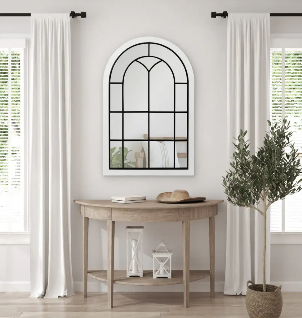 Joffrey Arch Windowpane Framed Wall Mirror, White 24x36