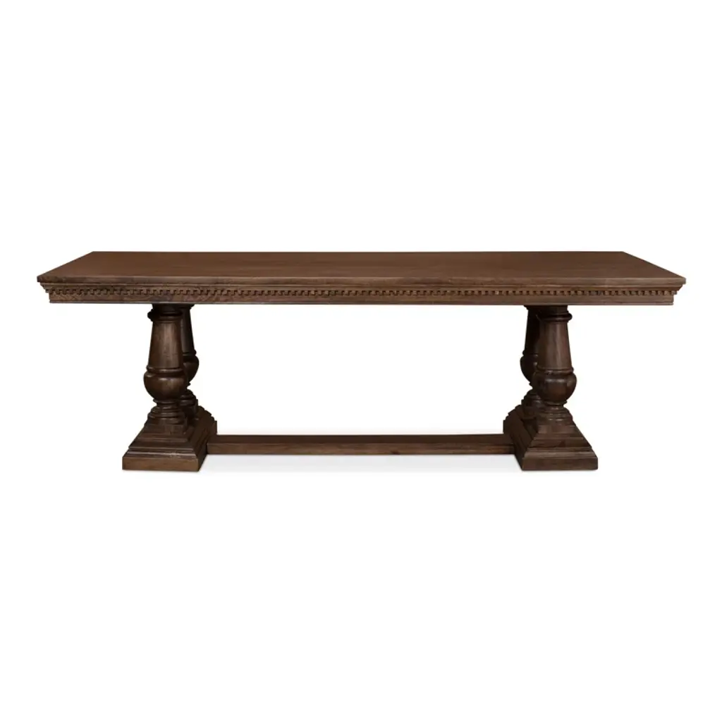 Inspired by French antiques and influenced by classic farmhouse design, the Archivist Trestle Table is an inviting gathering table for welcoming family and friends alike. With two 18-inch leaves, the table extends to 122 inches long to accommodate two armchairs and six side chairs for large gatherings. Without the leaves, the table will accommodate two armchairs and four side chairs.