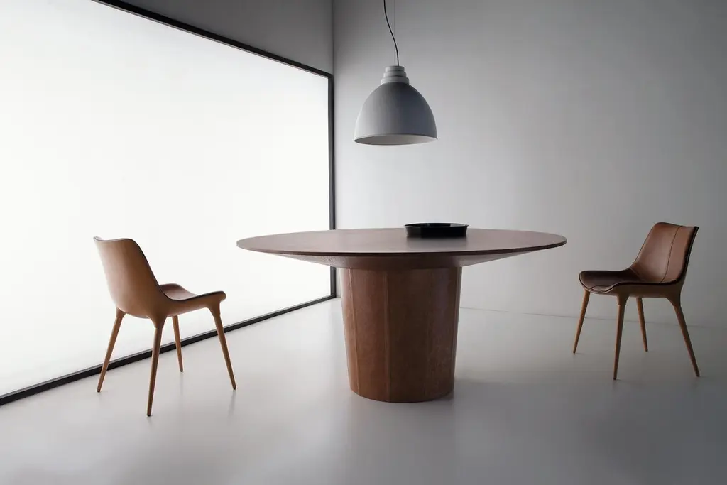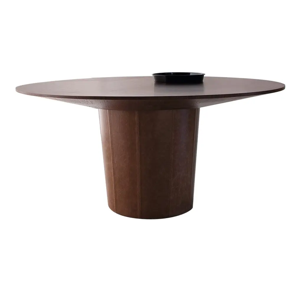 Joy Dining Table by Doimo BrasilDimensions: D 160 x H 75 cm Materials: Base: Smooth reconst. leather, Top: Veneer. With the intention of providing good taste and personality, Doimo deciphers trends and follows the evolution of man and his space. To this end, it translates into its products: simplicity, creativity and technology, creating a scenario that adapts to all lifestyles.Founded in 1994, it is currently an Italian-Brazilian joint venture located in Ribeirão das Neves, Minas Gerais, Brazil.